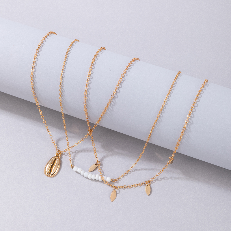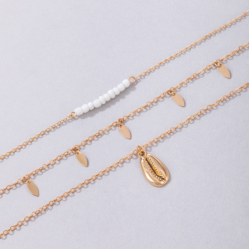 Fleepmart Bohemain Gold Shell Pendant Neckalce for Women Charms Beaded multilayer Clavicle Chain Alloy Party Jewelry Collar