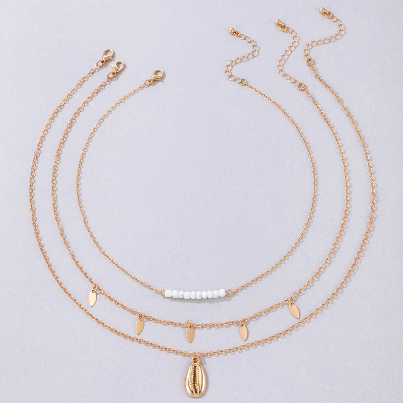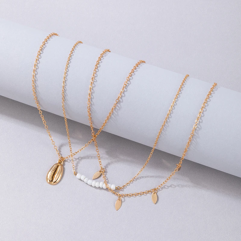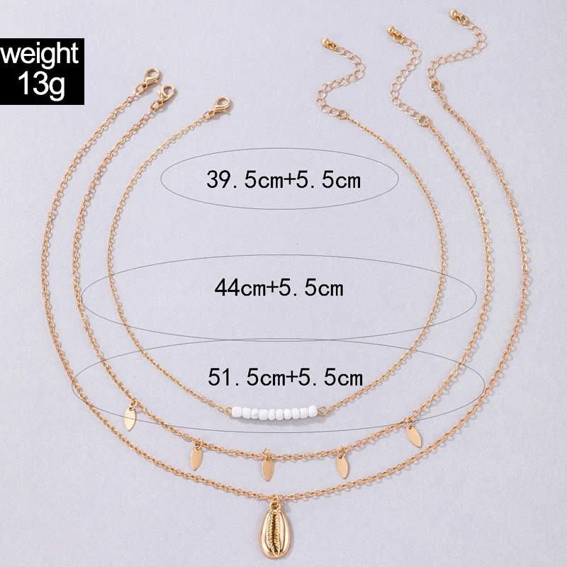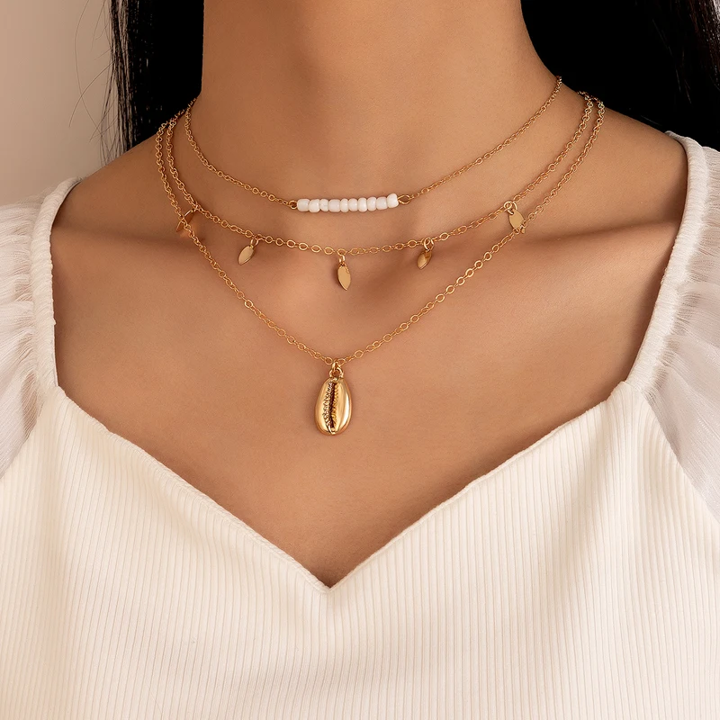 Fleepmart Bohemain Gold Shell Pendant Neckalce for Women Charms Beaded multilayer Clavicle Chain Alloy Party Jewelry Collar