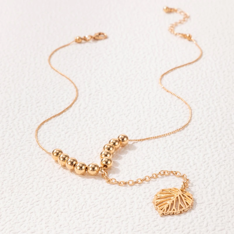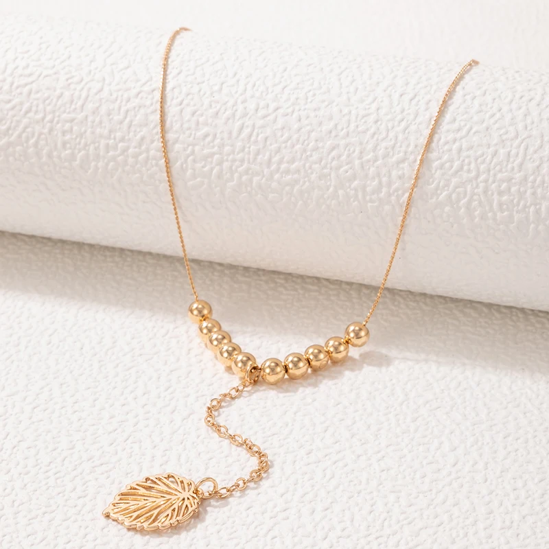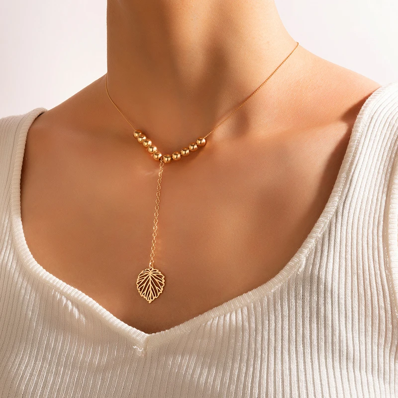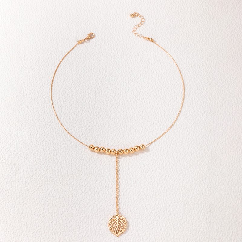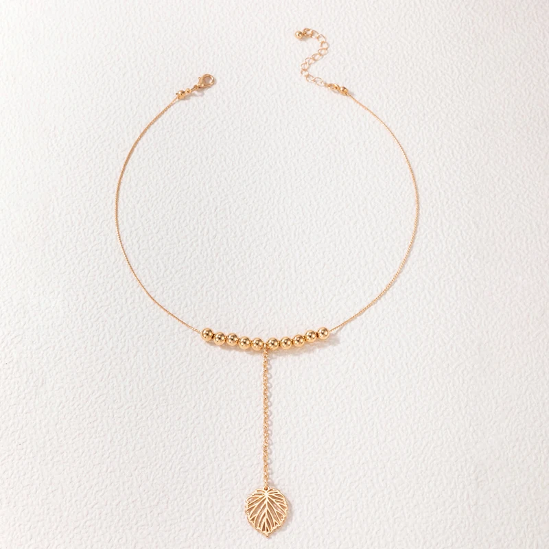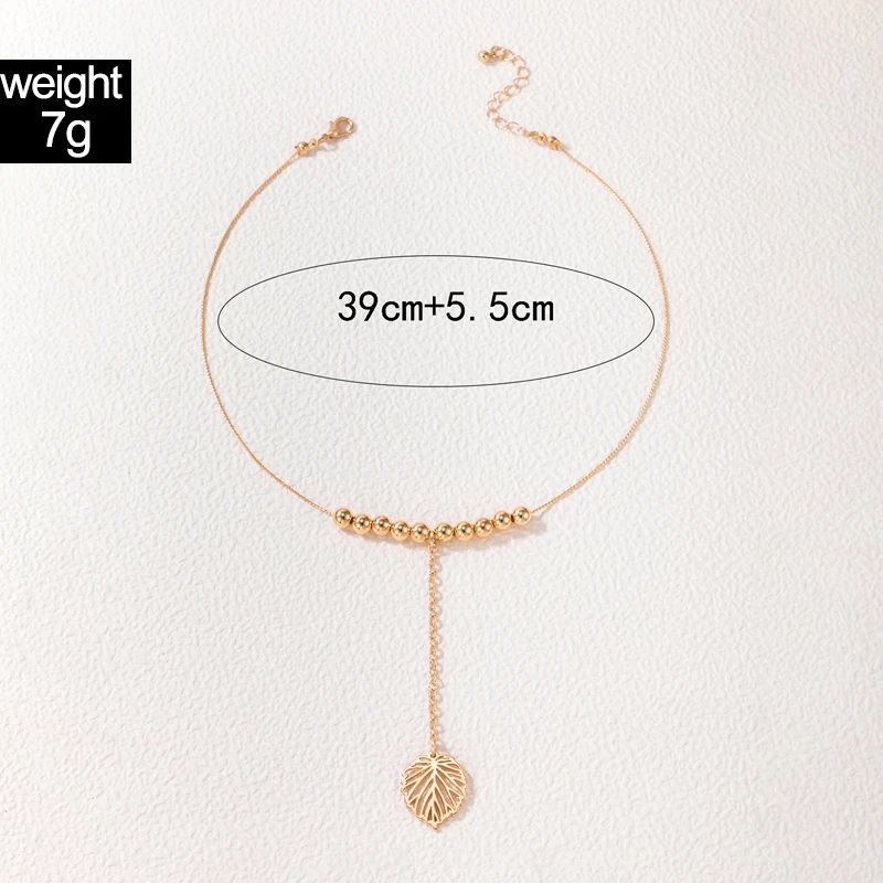Fleepmart Boheman Leaf Pendant Neckalce Charms Bead Chain Choker Gold Alloy Metal Adjustable Jewelry for Women Girls Collar