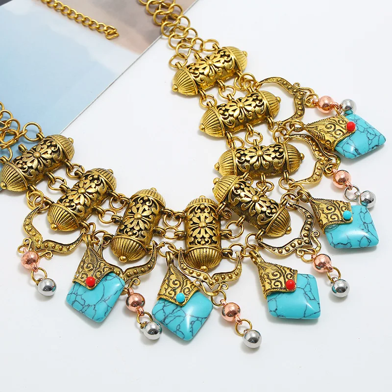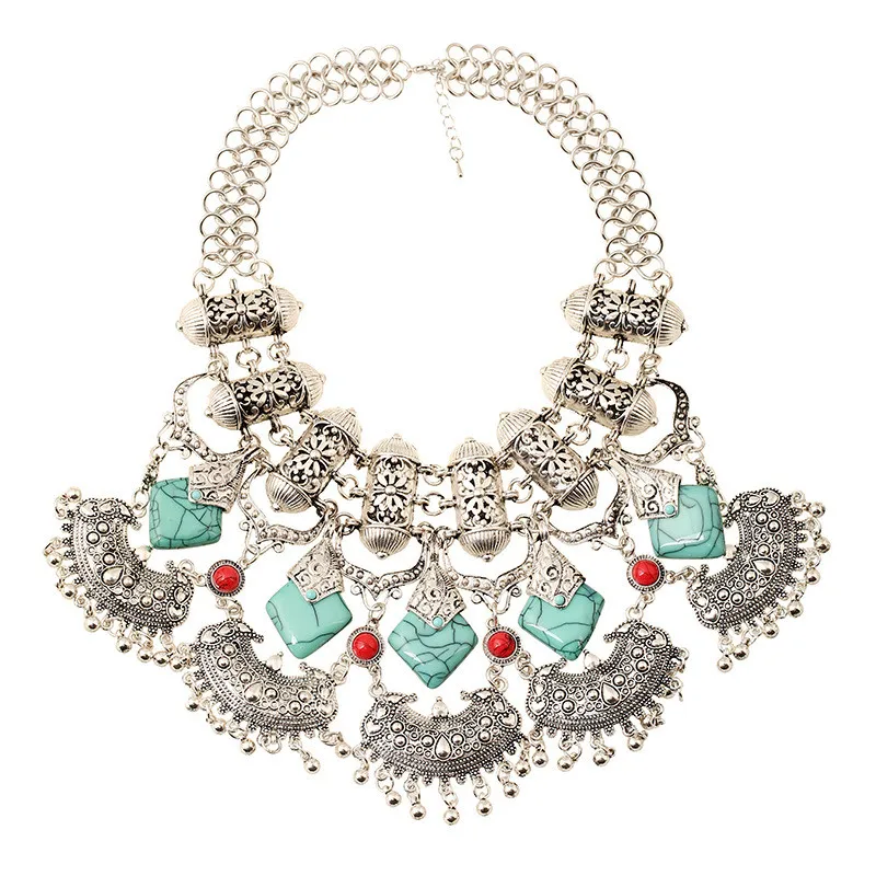 Fleepmart Bohemia Ethnic Tassel Big Chunky Collar Choker Necklace Maxi 2022Vintage Women Necklaces Pendants Collier