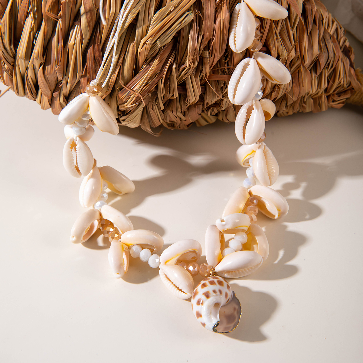 Fleepmart Bohemia Multicolour Bead Shell Pendant Necklace for Women Fashion Summer Adjustable Geometric Jewelry Holiday Beach Gift