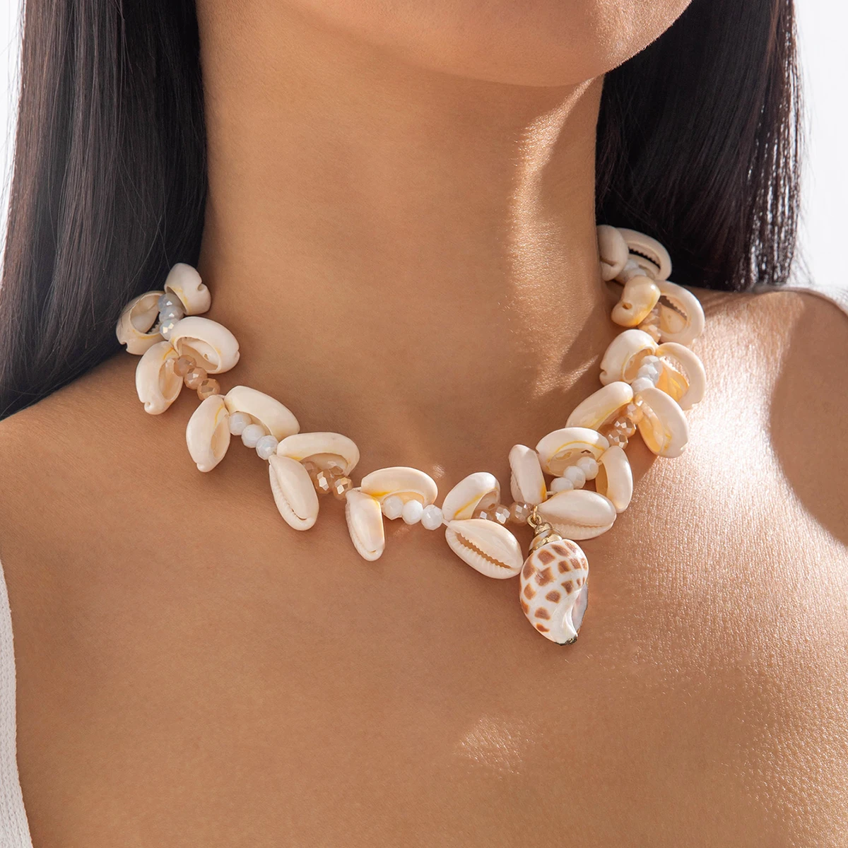 Fleepmart Bohemia Multicolour Bead Shell Pendant Necklace for Women Fashion Summer Adjustable Geometric Jewelry Holiday Beach Gift
