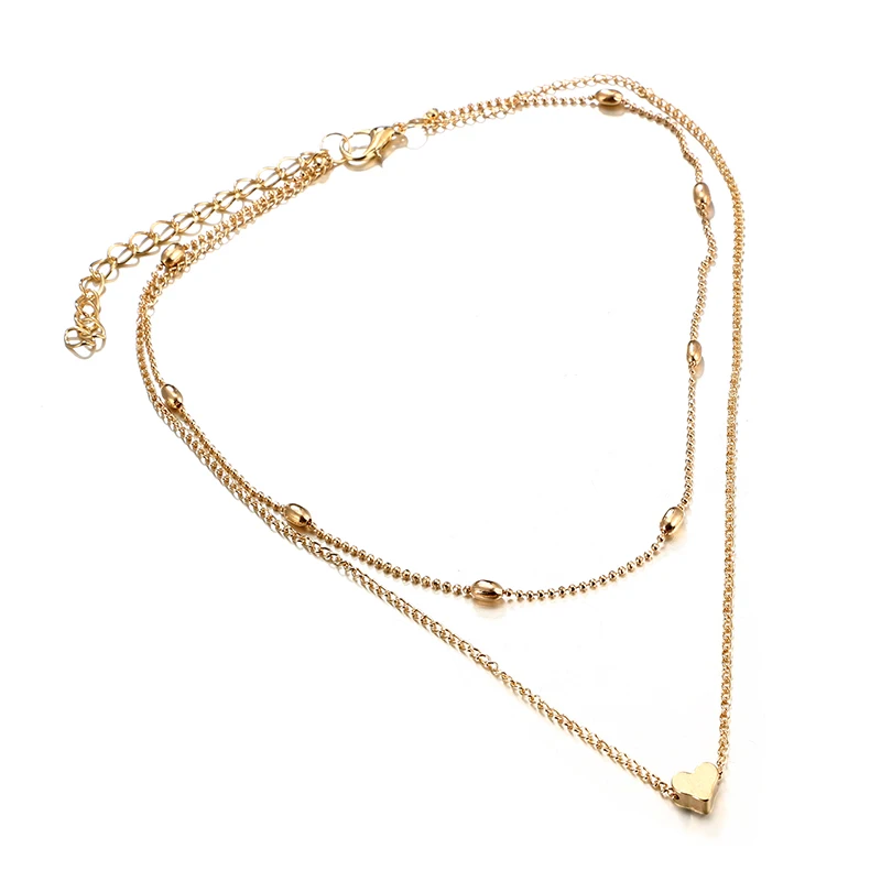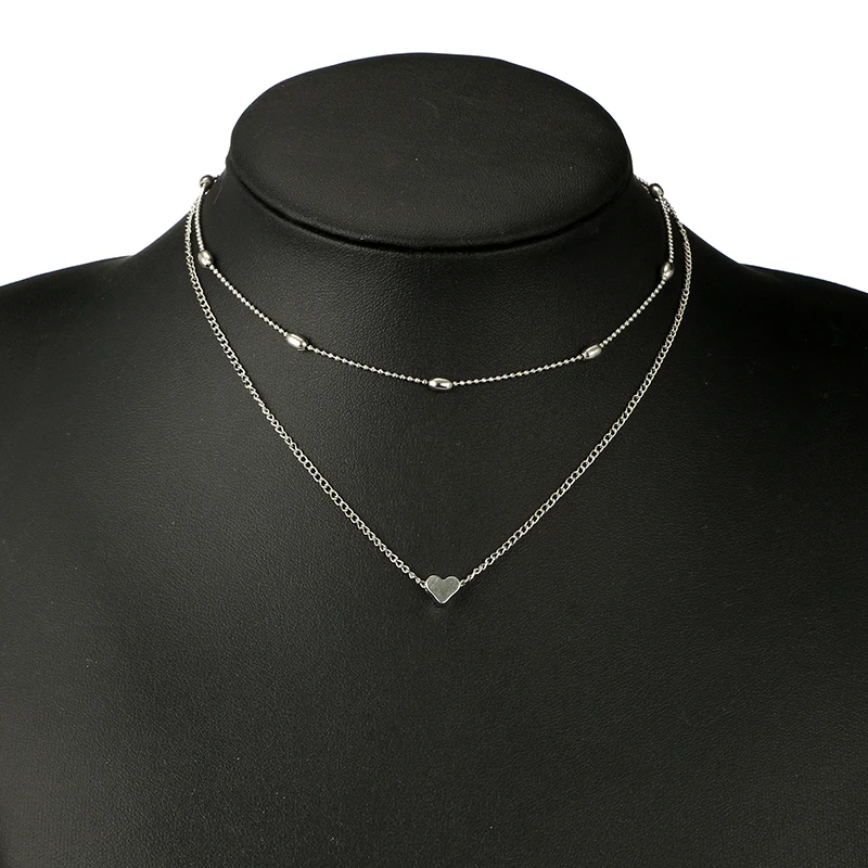 Fleepmart Bohemia Multilayer Tassel Love Heart Charm Chokers Necklaces for Women Vintage Gold Silver Color Chokers Collar