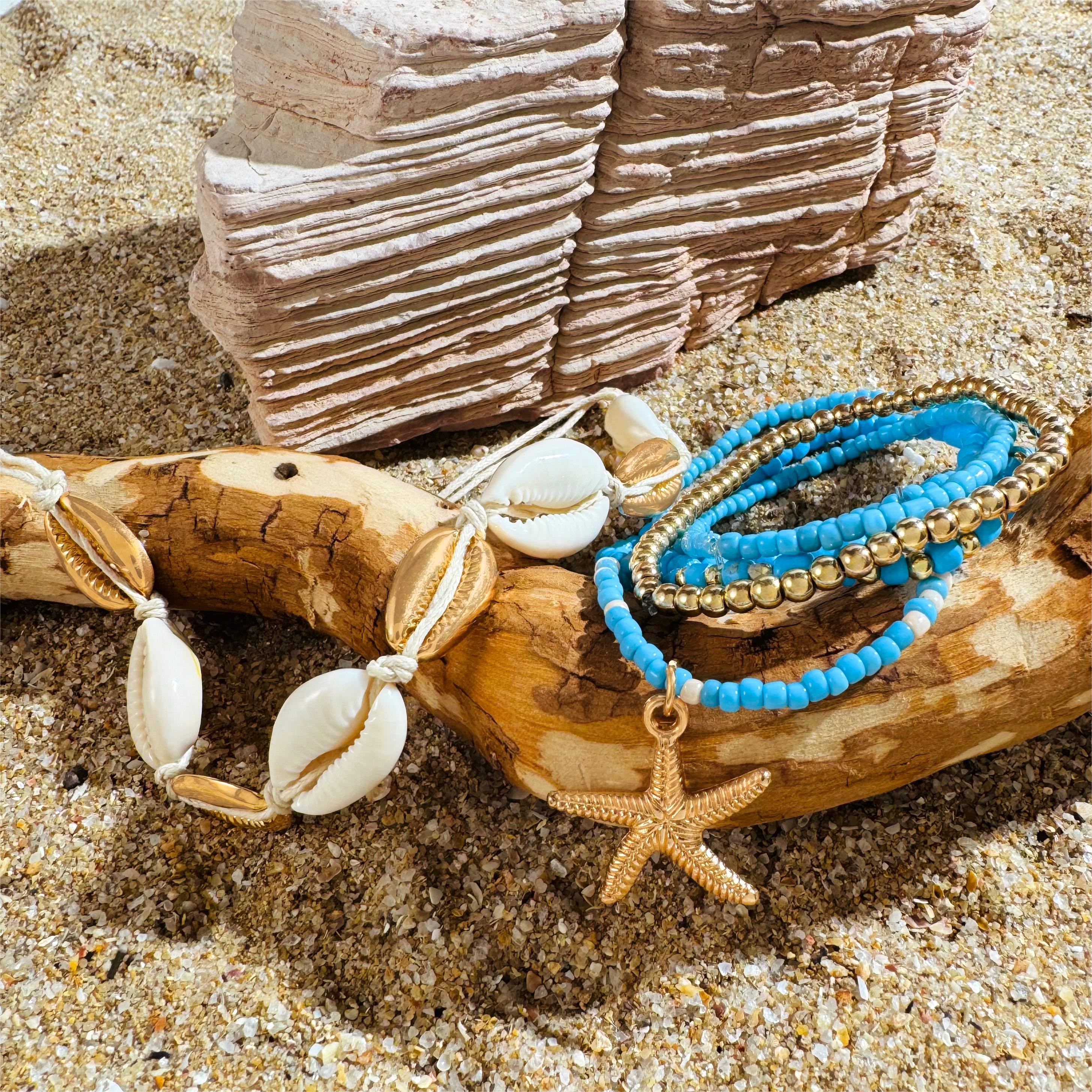 Fleepmart Bohemia Shell Starfish Bracelet Set for Women Sand Beach Measle Multilayer Bracelet Jewelry Party 7pcs/set