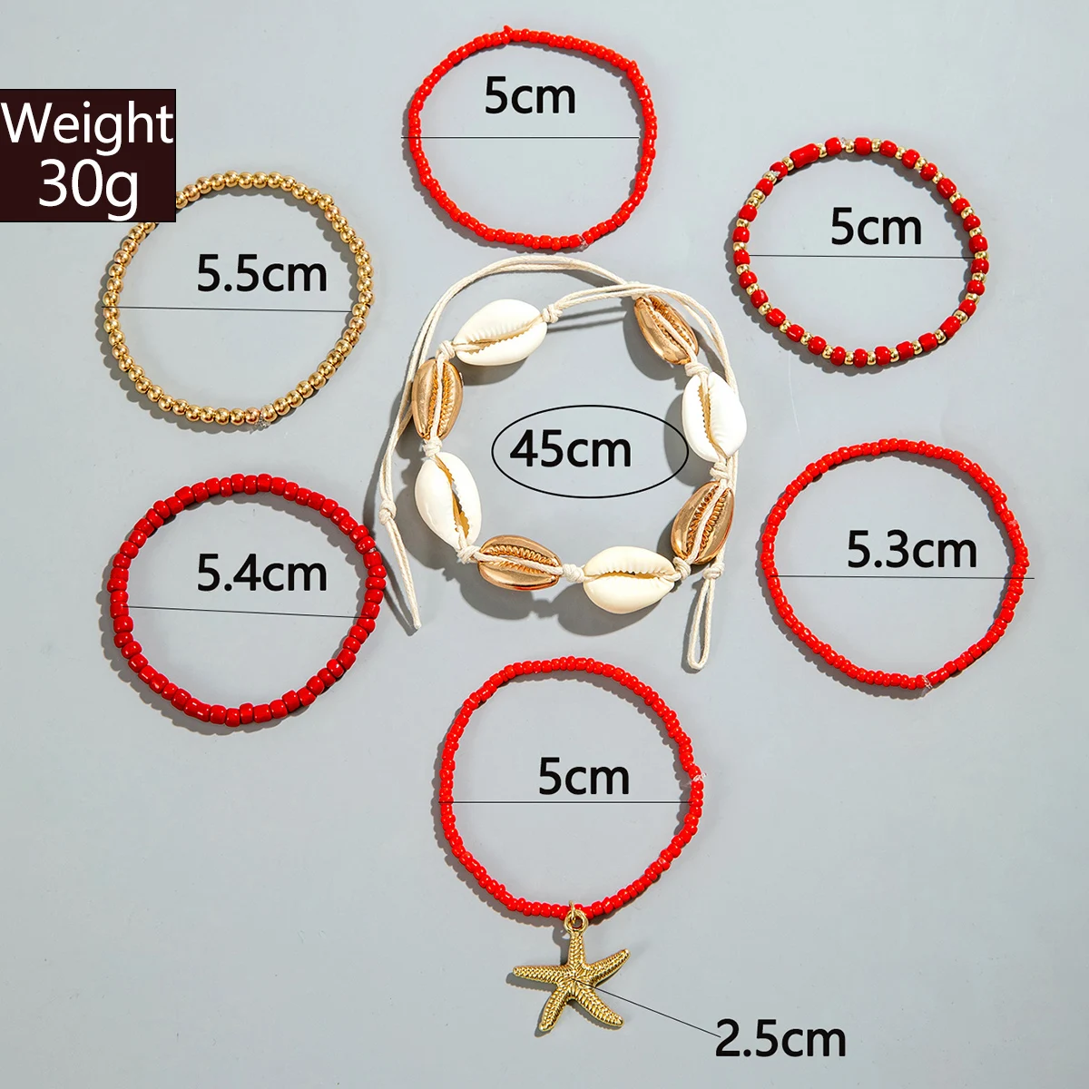 Fleepmart Bohemia Shell Starfish Bracelet Set for Women Sand Beach Measle Multilayer Bracelet Jewelry Party 7pcs/set