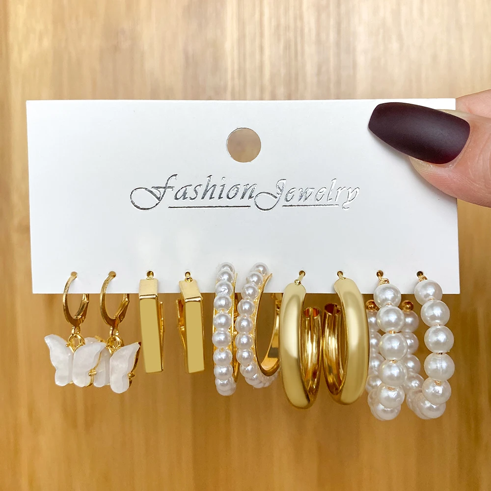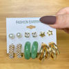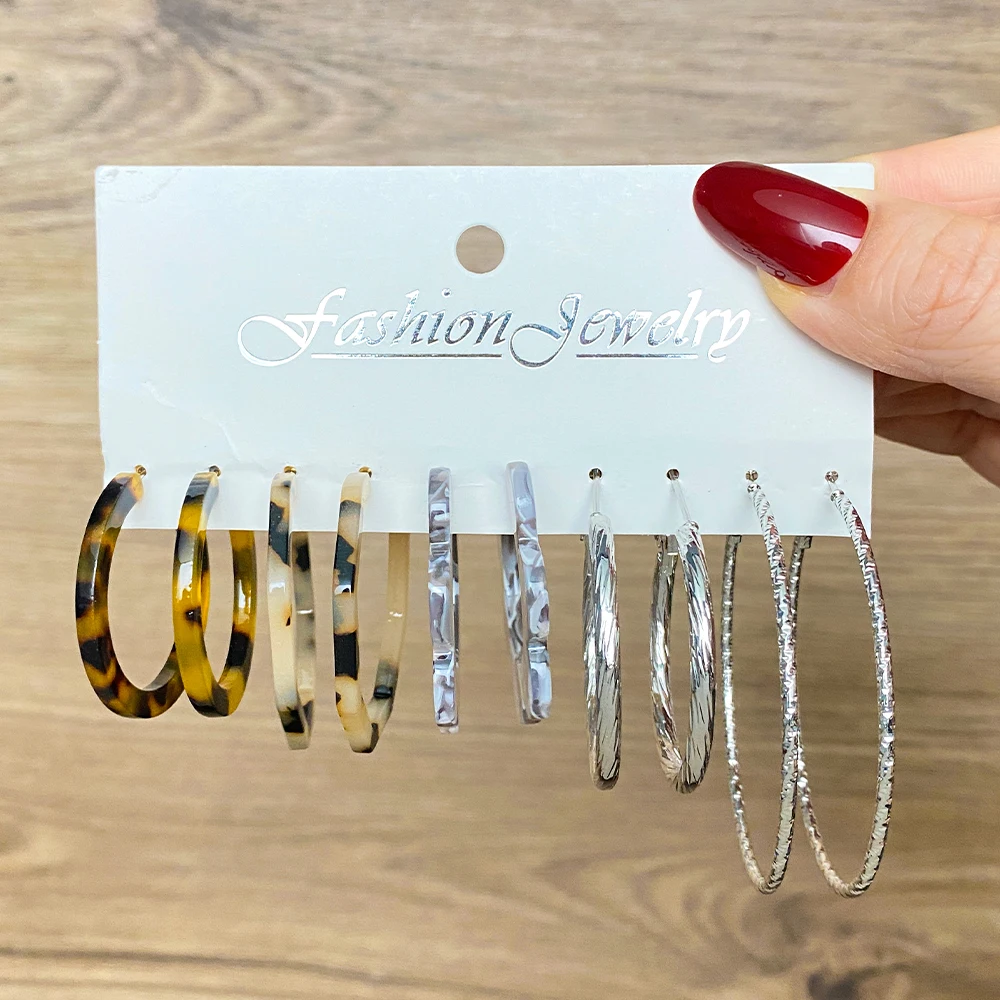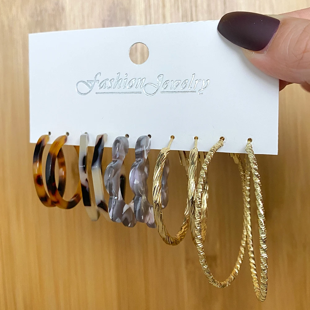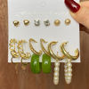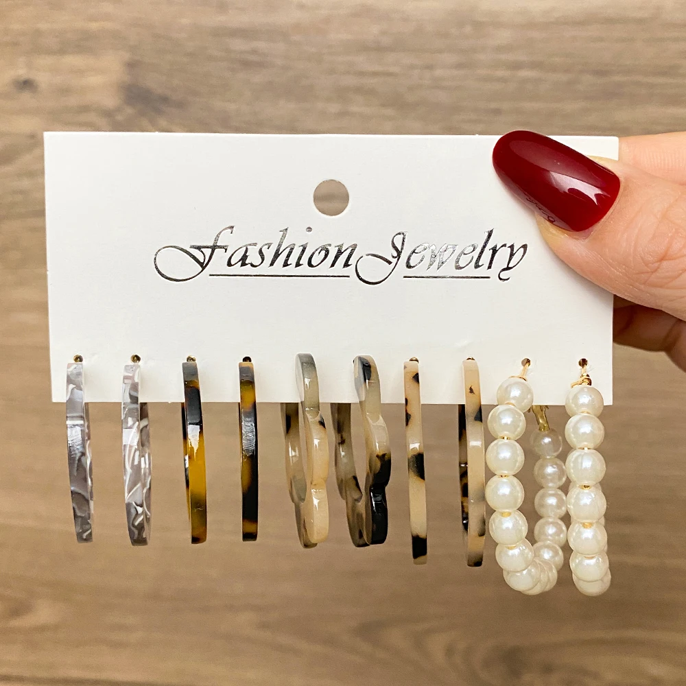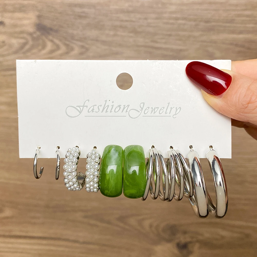 Fleepmart Bohemian Acrylic Metal Pearl Earring Set Retro Green Acrylic Circle Metal Chain Pendant Earring Trend Set Women Jewelry