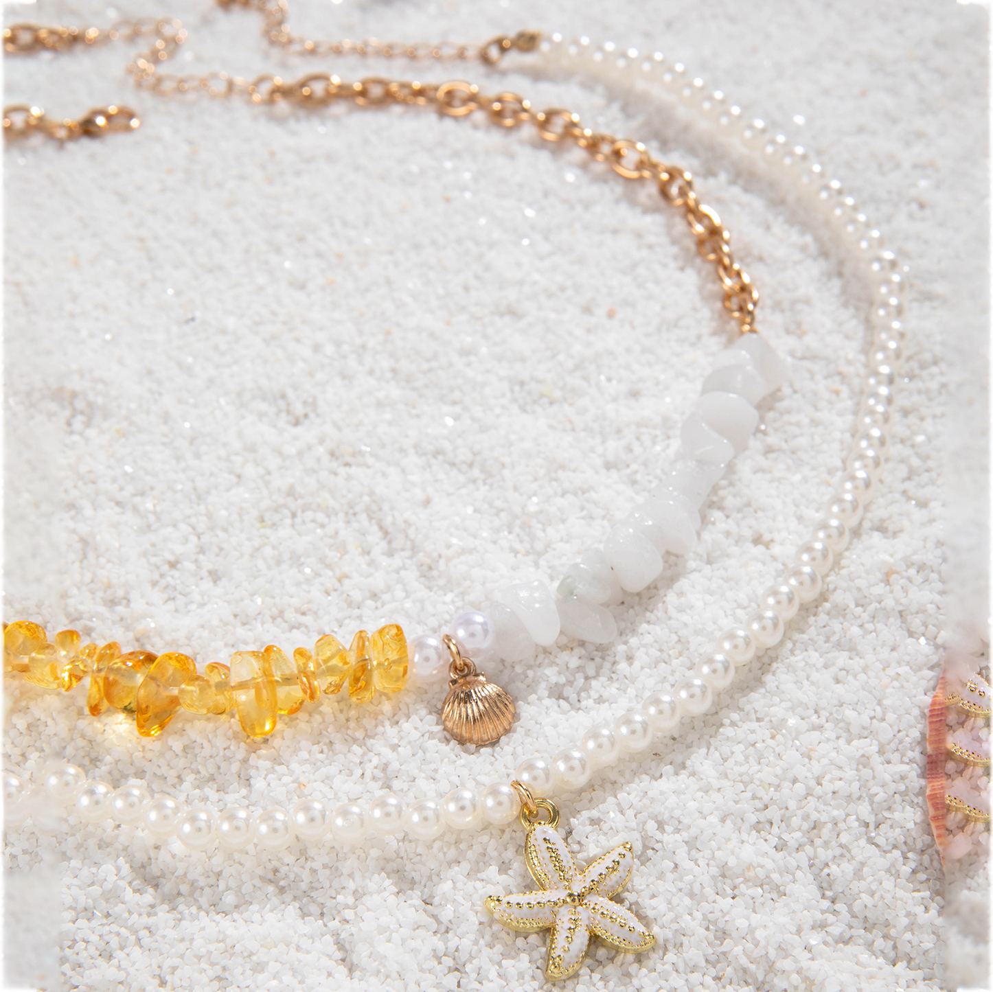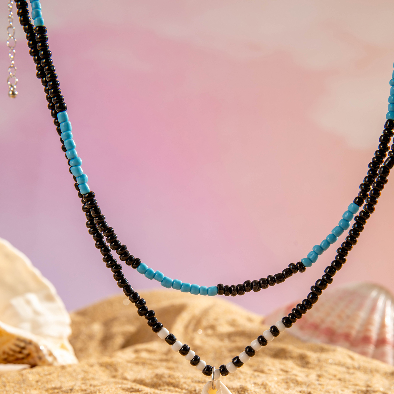 Fleepmart Bohemian Acrylic Seed Beads Strand Necklace for Women Chain With Acrylic Shell Charm Jewelry Collar Wedding Party Gift