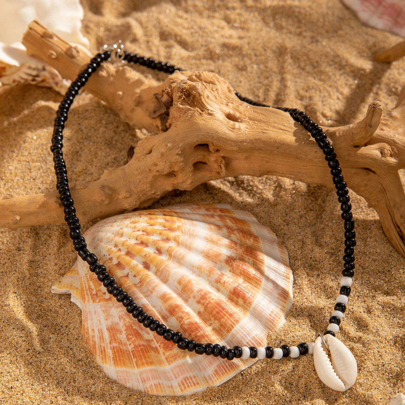 Fleepmart Bohemian Acrylic Seed Beads Strand Necklace for Women Chain With Acrylic Shell Charm Jewelry Collar Wedding Party Gift