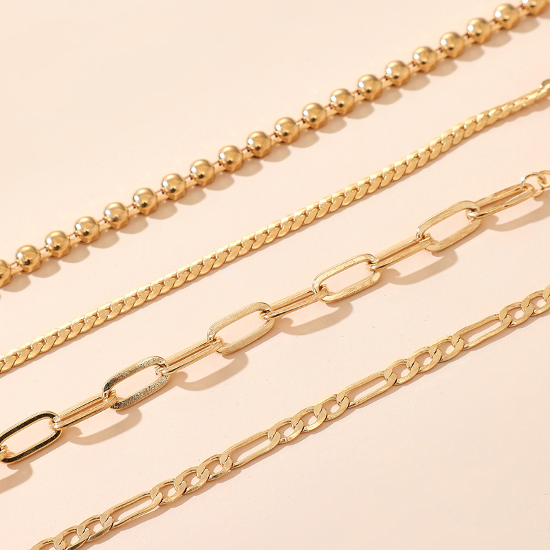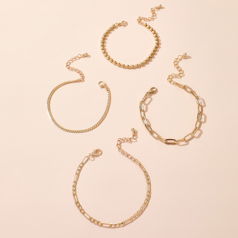 Fleepmart Bohemian Beaded Bracelets for Women Punk Thick Chain Hollow Geoemtry Alloy Metal Adjustable Jewelry 4pcs/sets