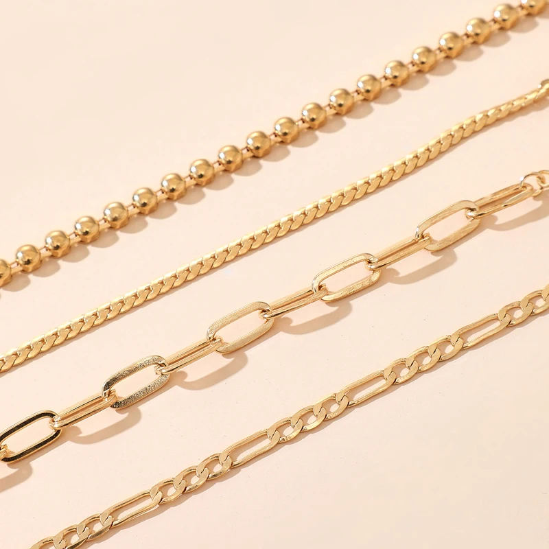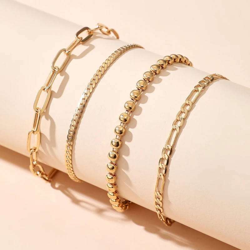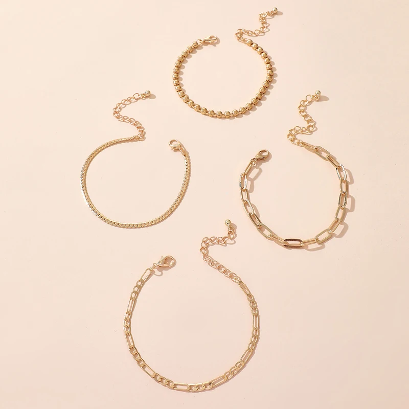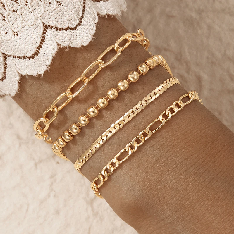 Fleepmart Bohemian Beaded Bracelets for Women Punk Thick Chain Hollow Geoemtry Alloy Metal Adjustable Jewelry 4pcs/sets