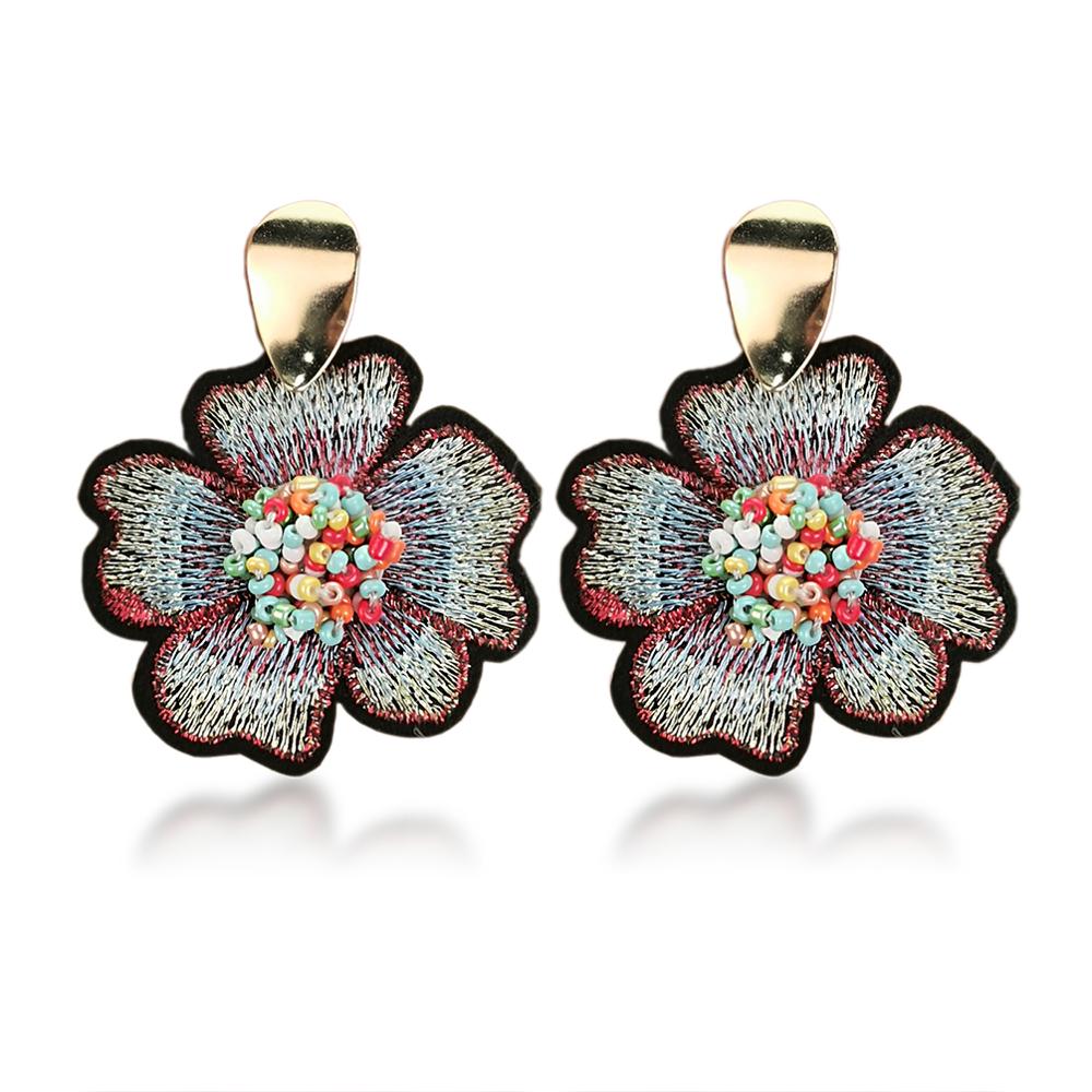 Fleepmart Bohemian Beads Flower Embroidered Earrings For Women 2022 Big Handmade Beaded Drop Earrings Ethnic Jewelry