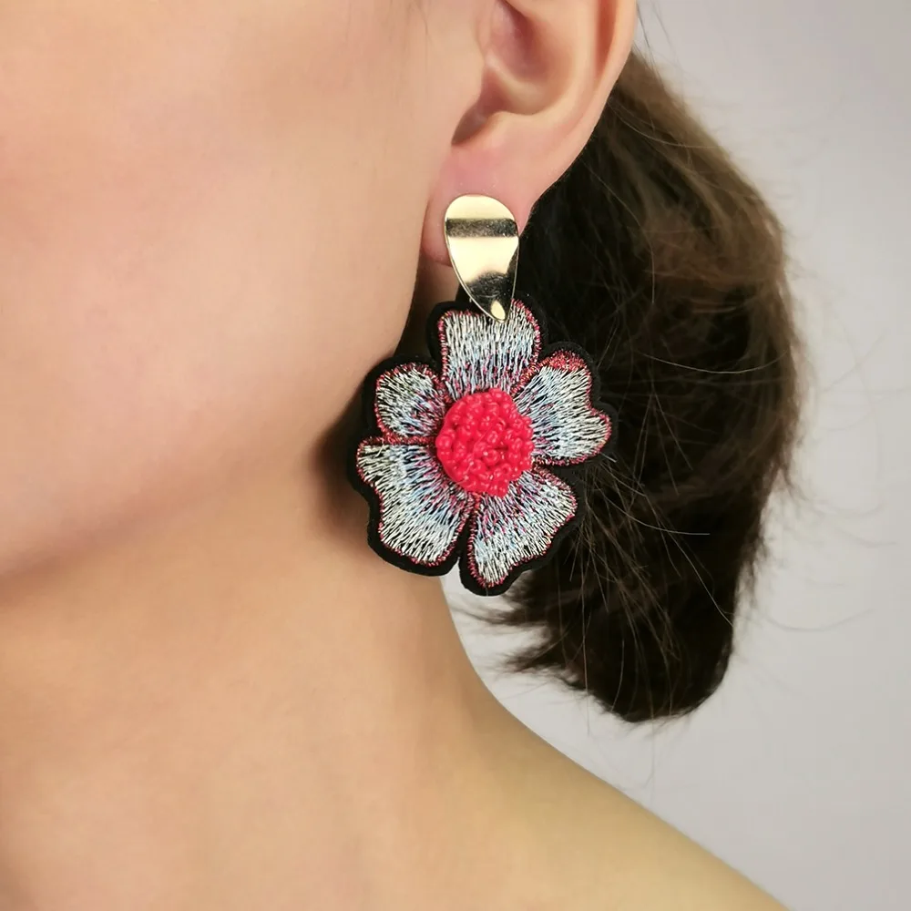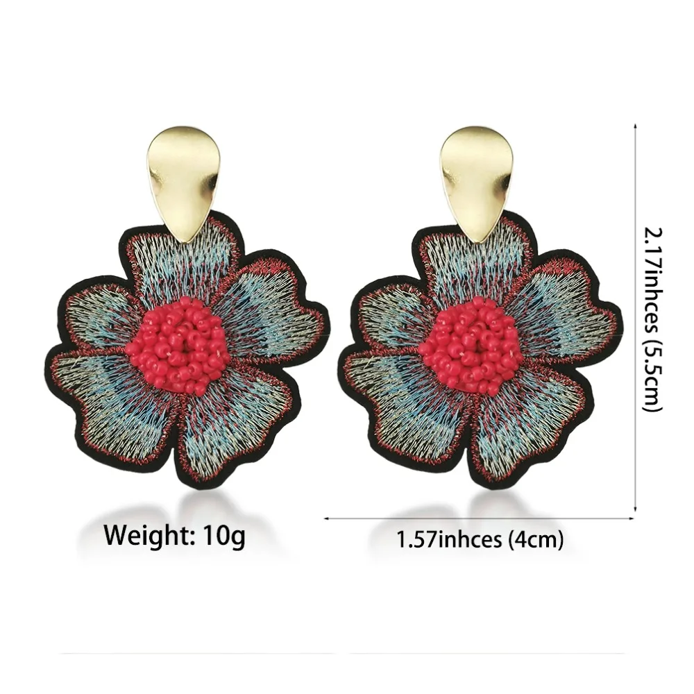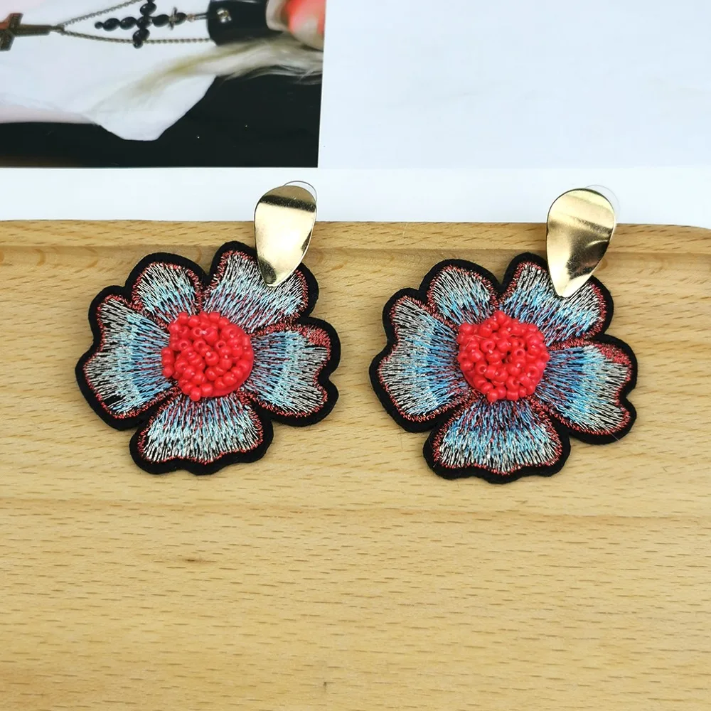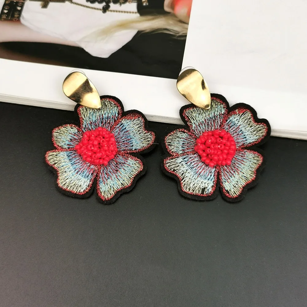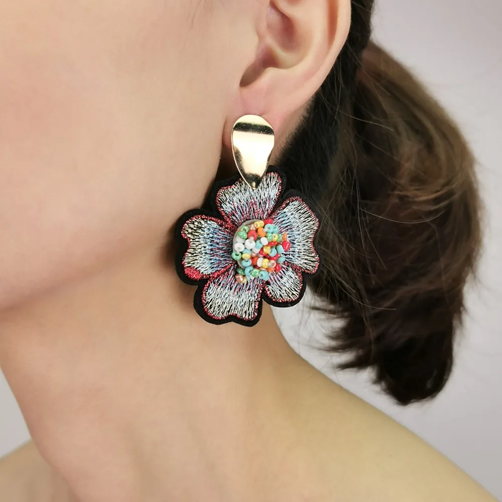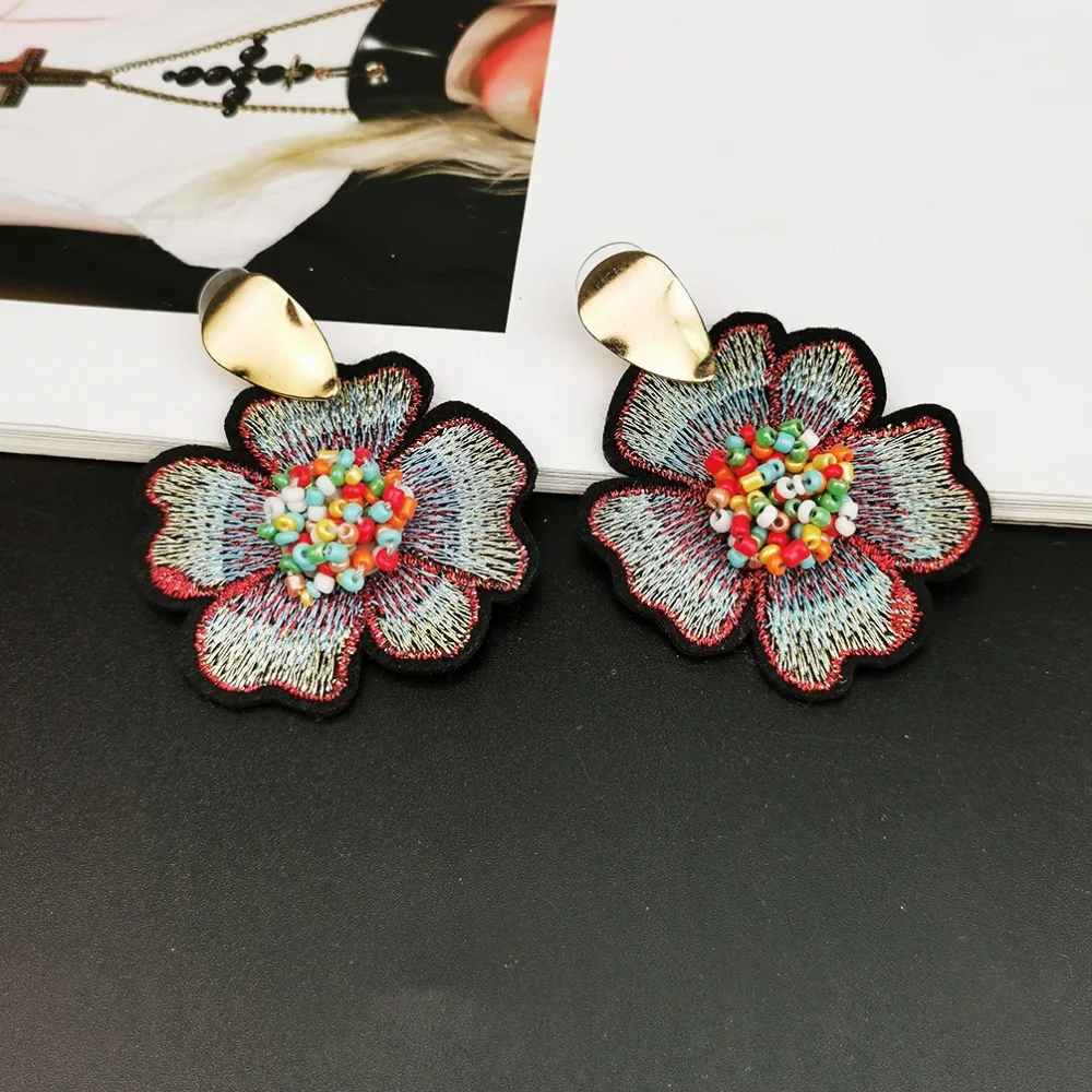 Fleepmart Bohemian Beads Flower Embroidered Earrings For Women 2022 Big Handmade Beaded Drop Earrings Ethnic Jewelry