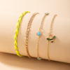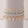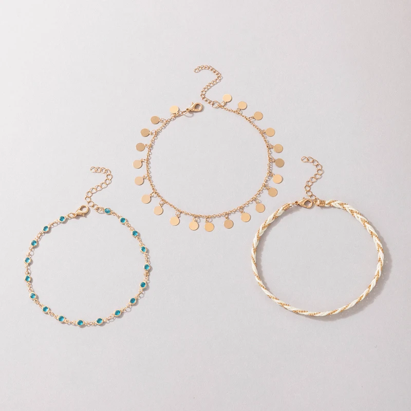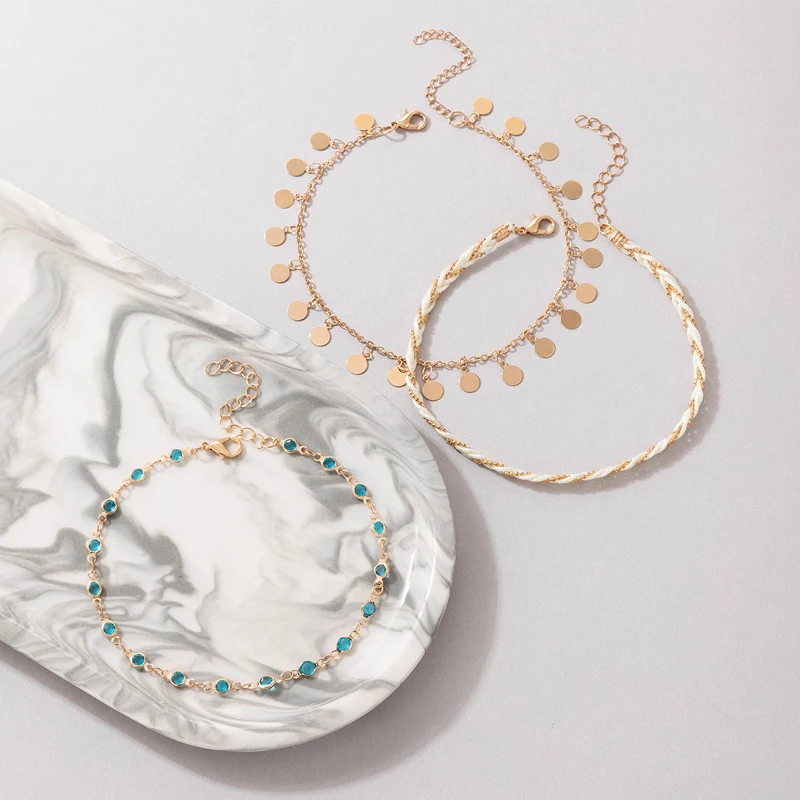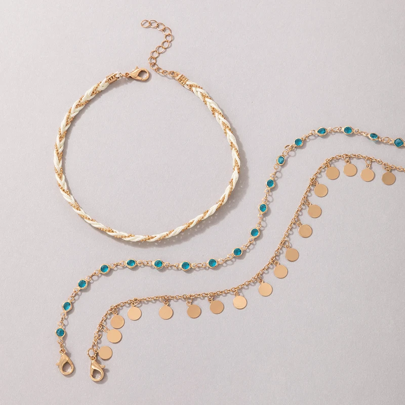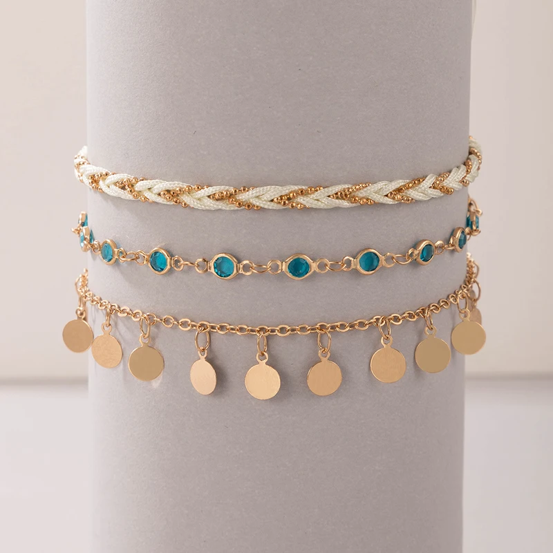 Fleepmart Bohemian Blue Crystal Stone Anklets for Women Gold Circle Tassel Rope Cord Anklets Multilayer Party Jewelry Accessories