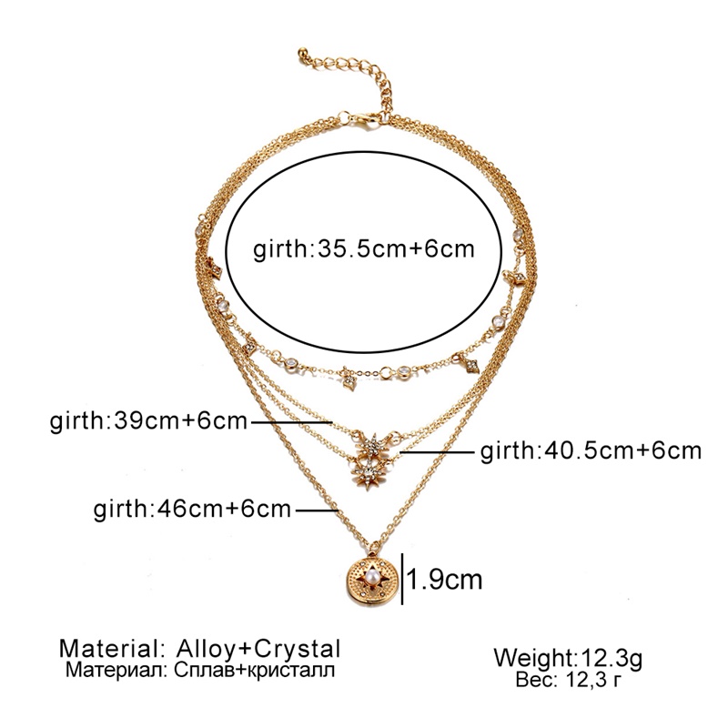 Fleepmart Bohemian Fashion Delicate Geometric Crystal Tassel Rhinestone Star Pendant Multilayer Gold Necklace Women Christmas Gifts