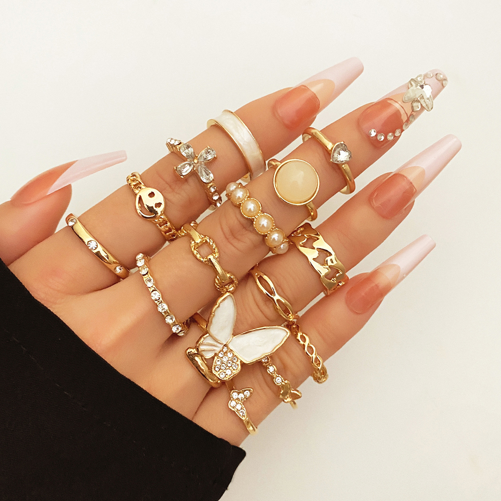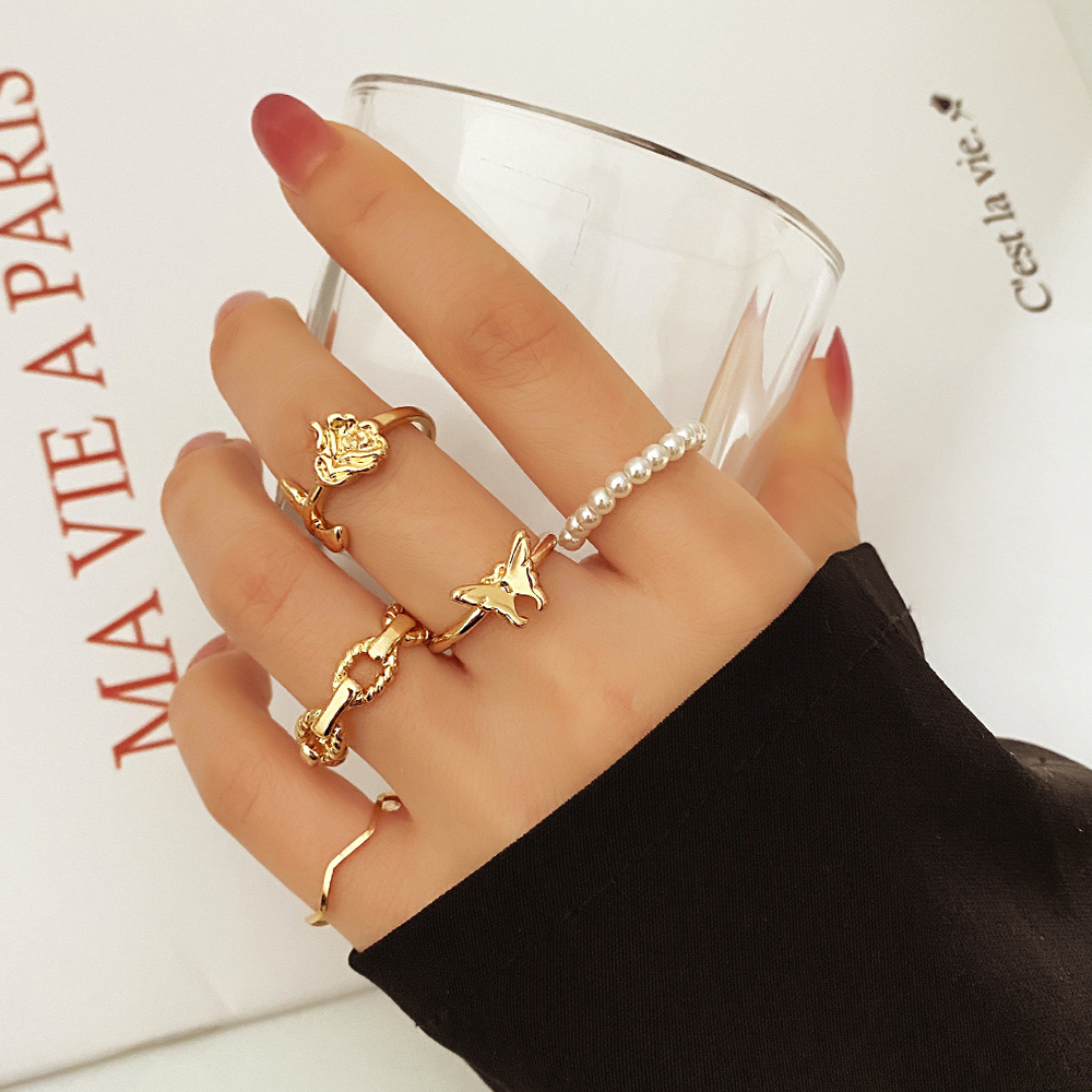Butterfly flower pearl ring set
