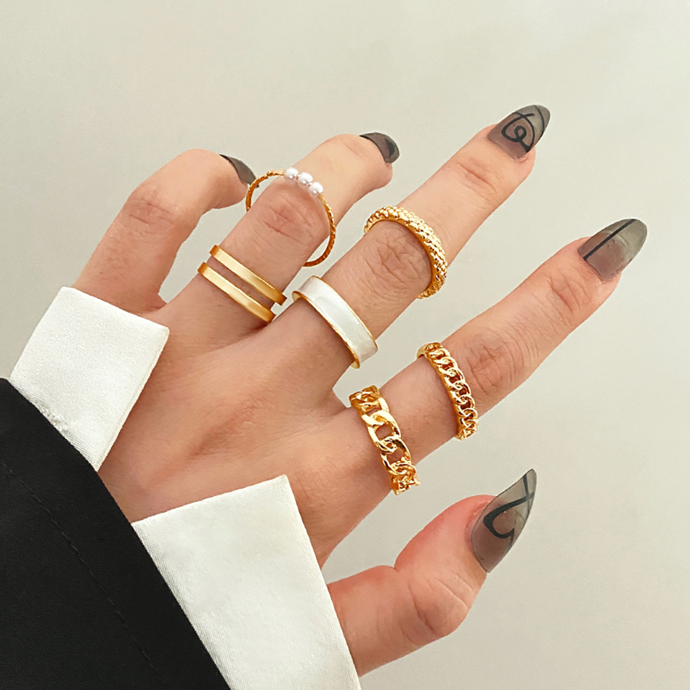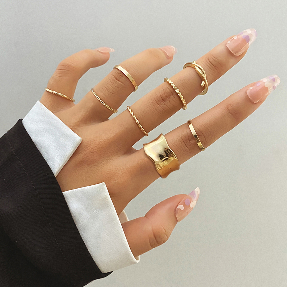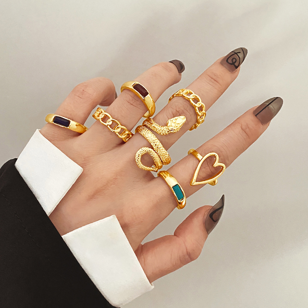 Fleepmart Bohemian Gold Wide Rings Set For Women Girls Simple Snake Chain Finger Rings 2022 NEW Bijoux Jewelry Gifts Ring Female