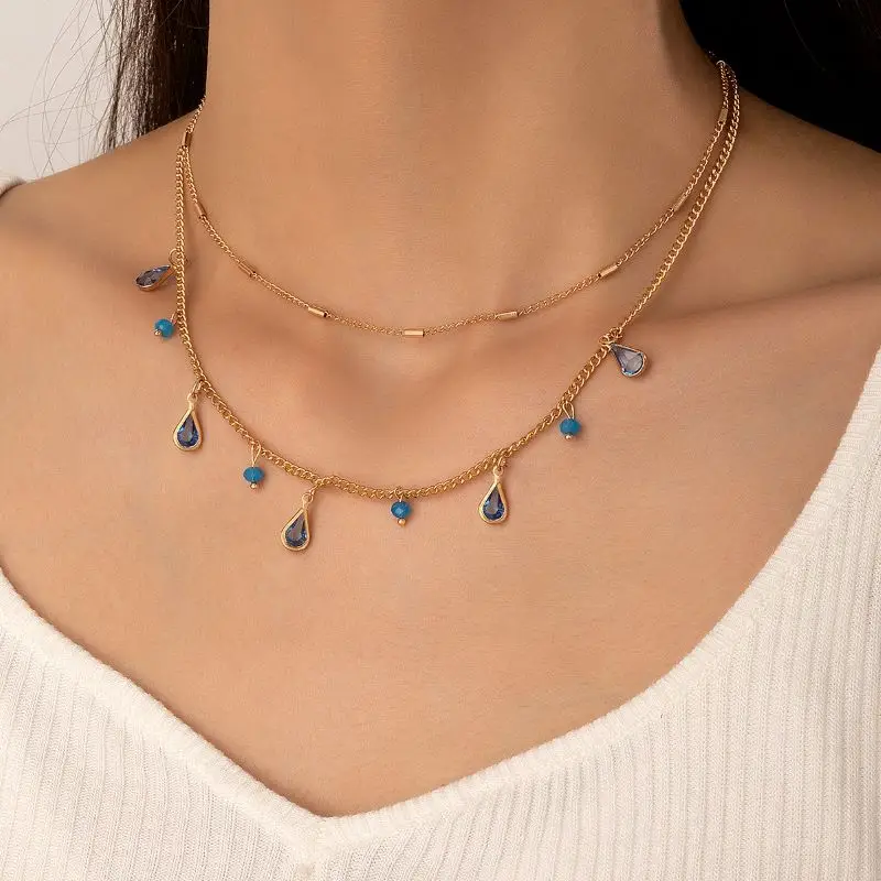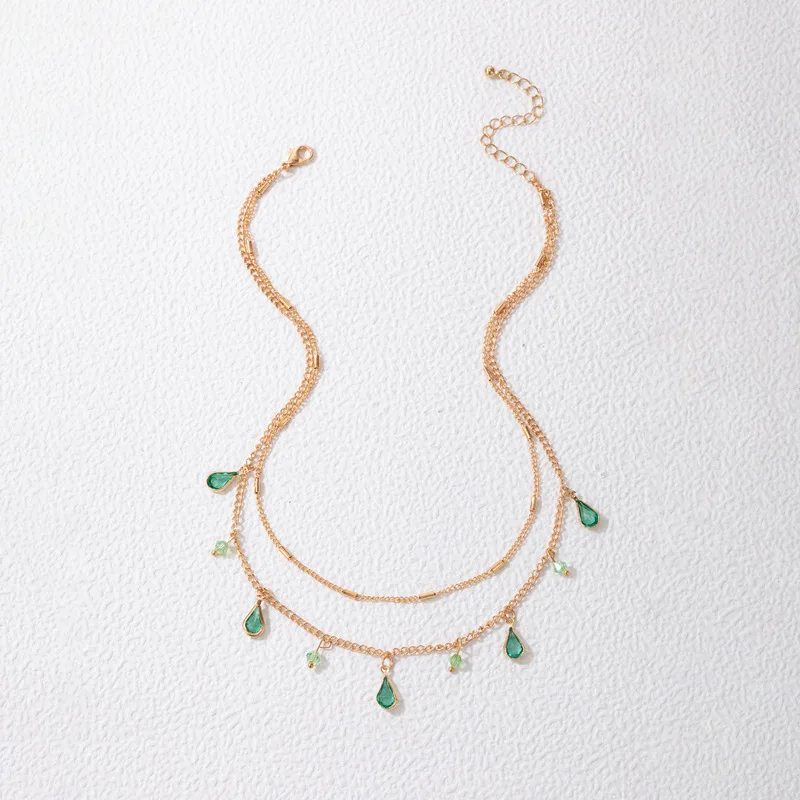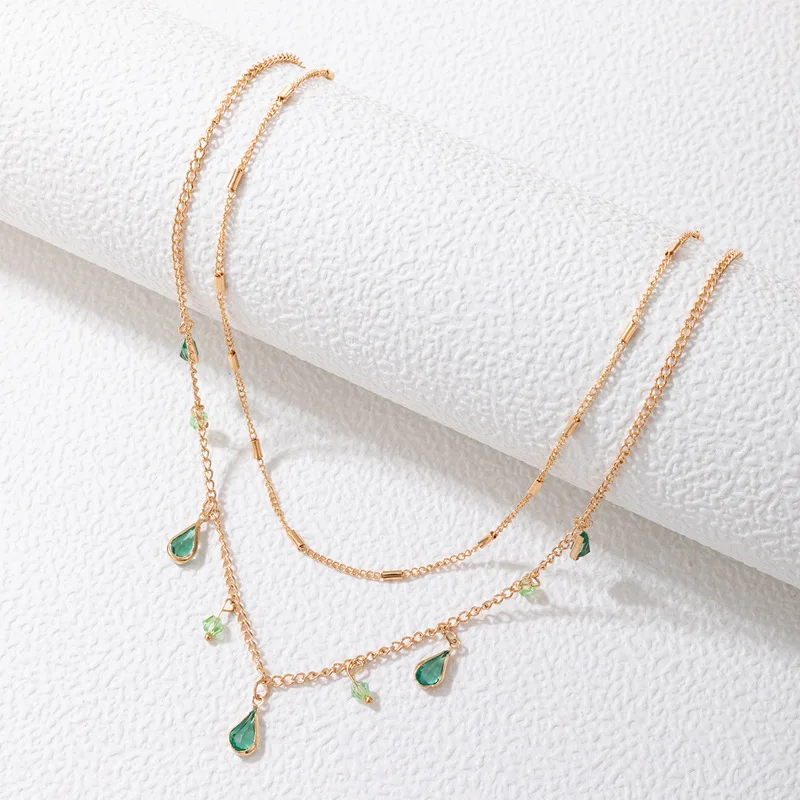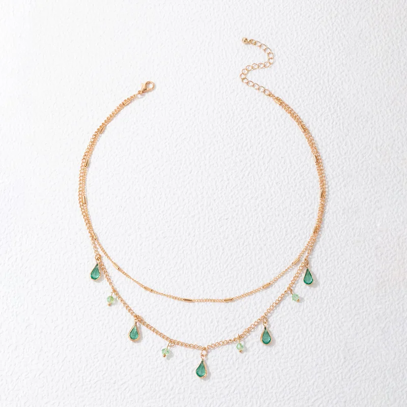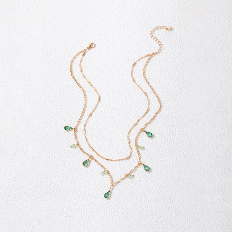 Fleepmart Bohemian Green Crystal Stone Pendan Double Necklace for Women Gold Color Alloy Metal Water Drop Clavicle Necklace JewelryFleepmart Bohemian Green Crystal Stone Pendan Double Necklace for Women Gold Color Alloy Metal Water Drop Clavicle Necklace Jewelry