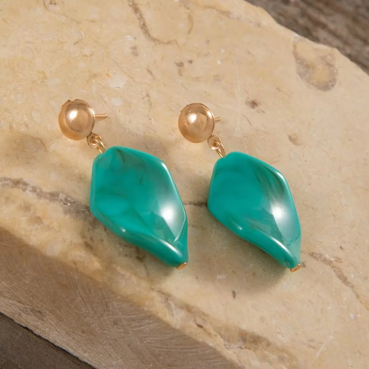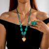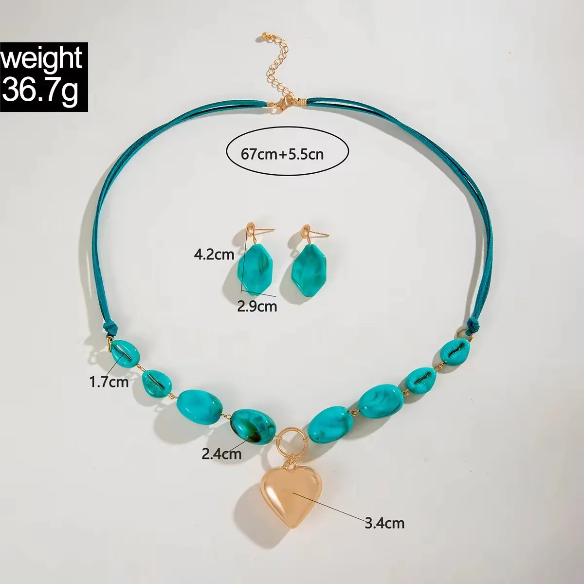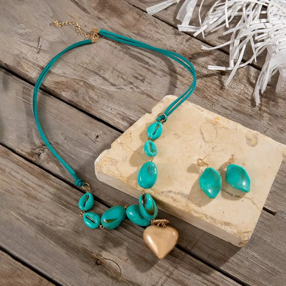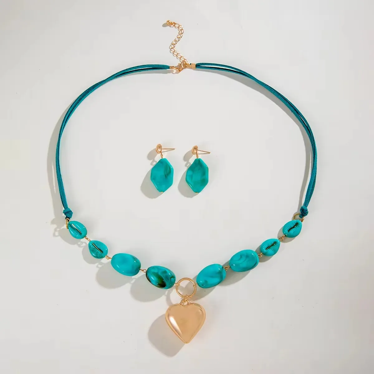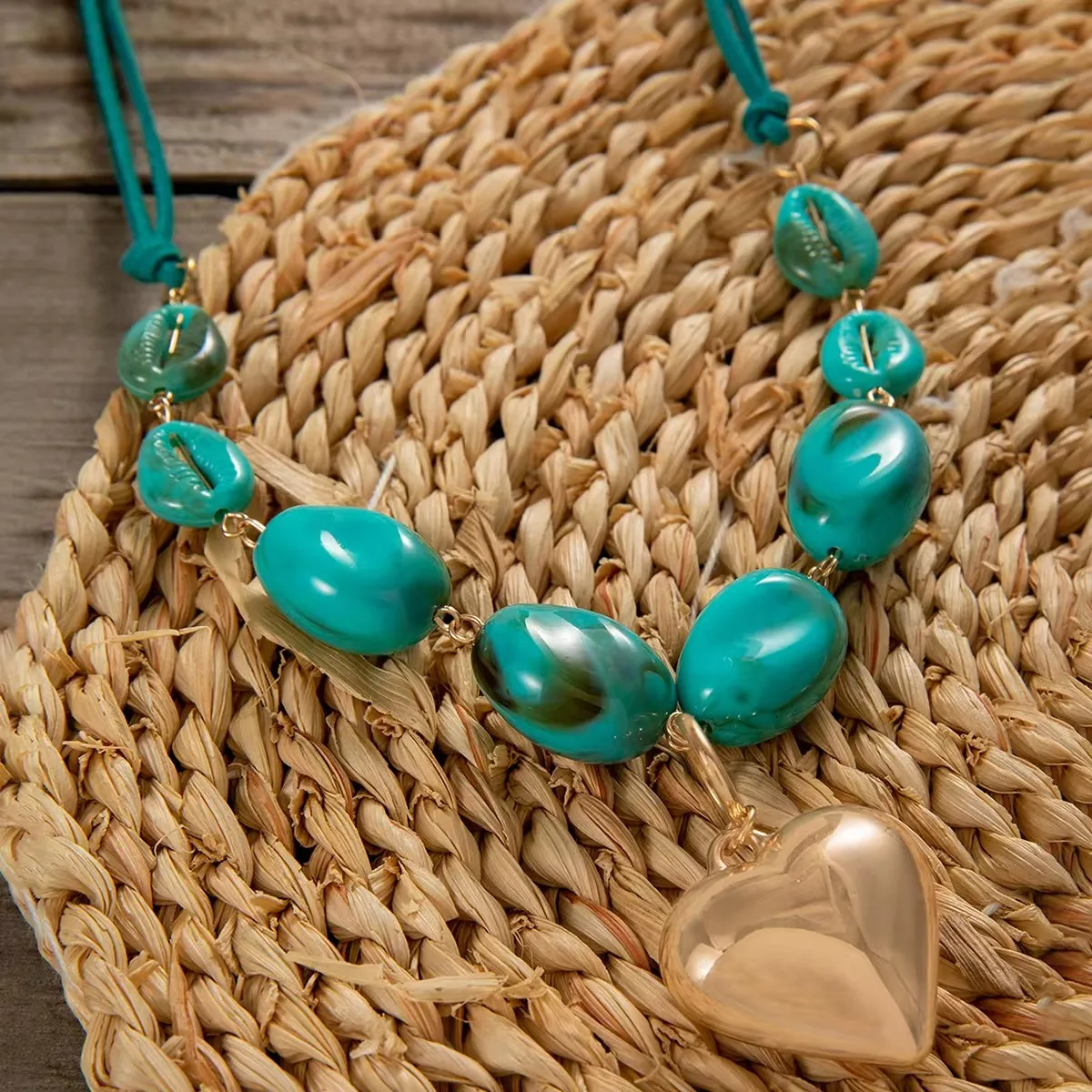 Fleepmart Bohemian Green Stone Drop Earrings Charming Handmade Beaded Adjustable Pendant Necklace Jewelry Set for Women Party