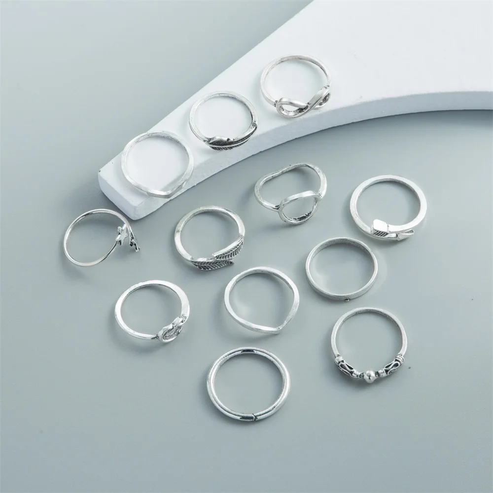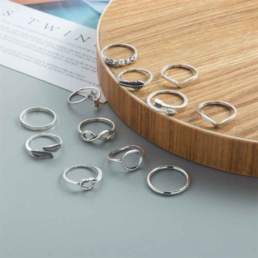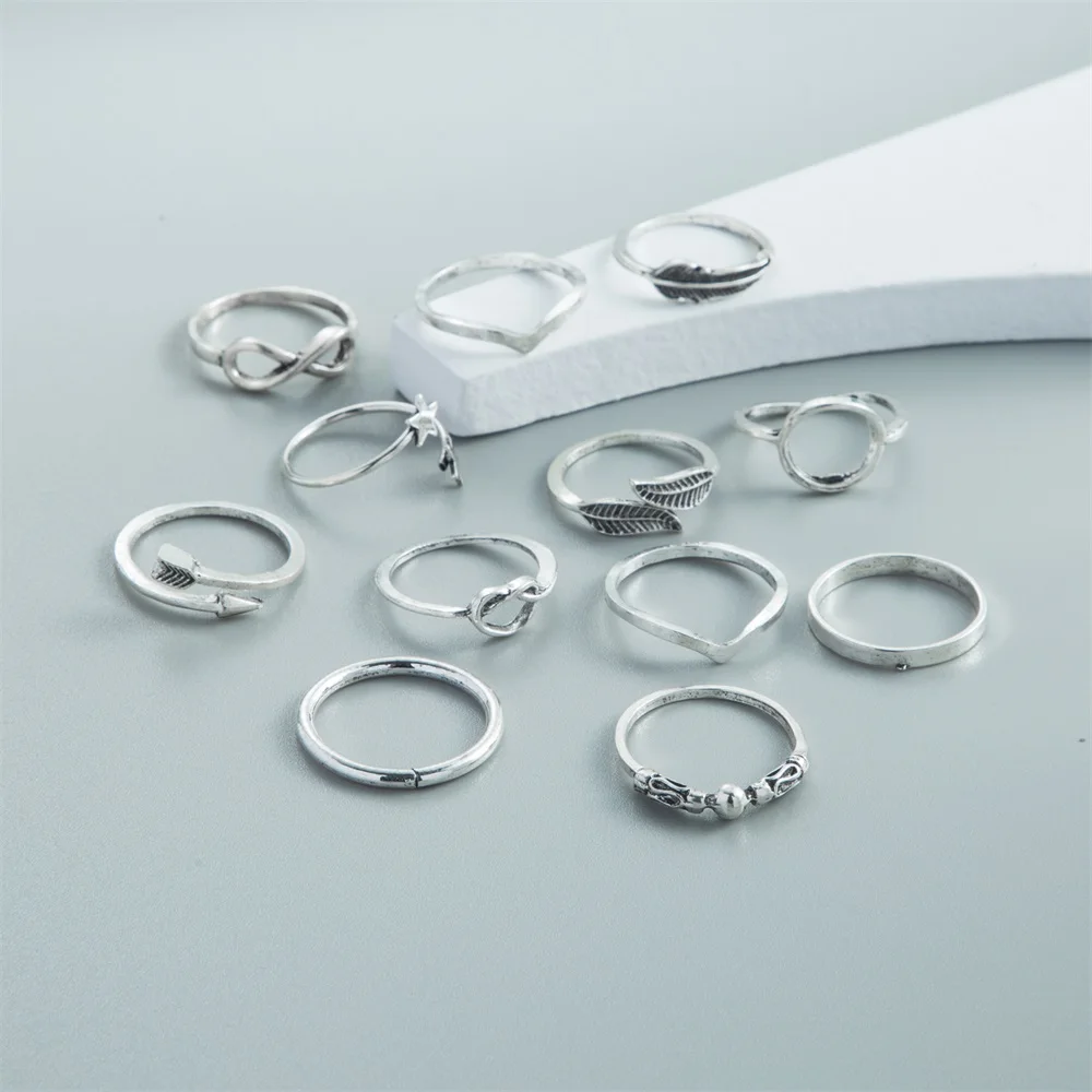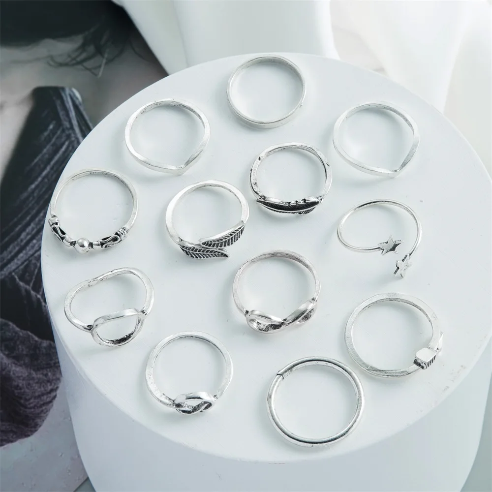 Fleepmart Bohemian Hollow Circle Twist Joint Ring Set for Women Retro Geometric Circle Star Finger Joint Ring Trendy Women’s Jewelry Gift