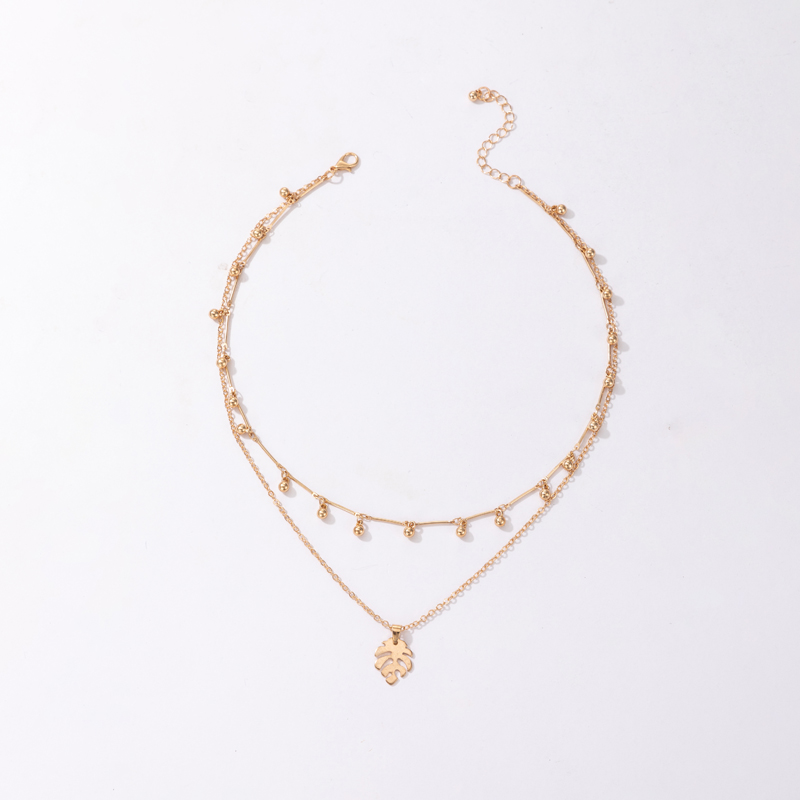 Fleepmart Bohemian Leaf Pendant Neckalce for Women Charms Tassel Multilayer Chain Choker Adjustable Jewelry Accessories Collar