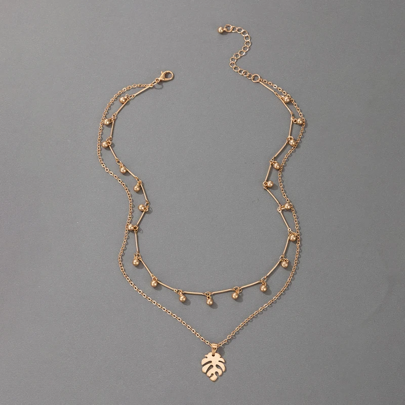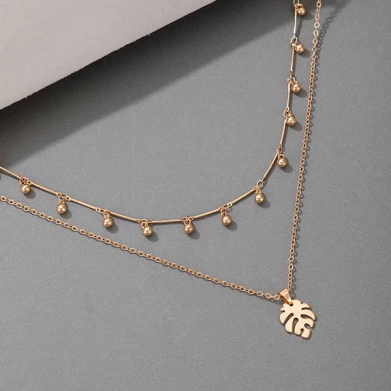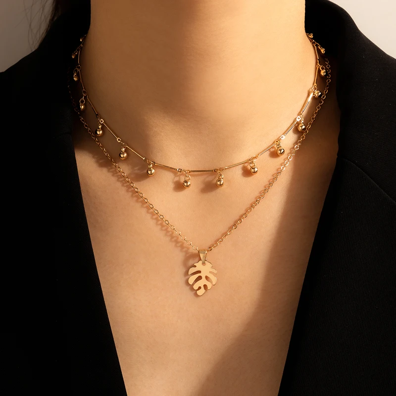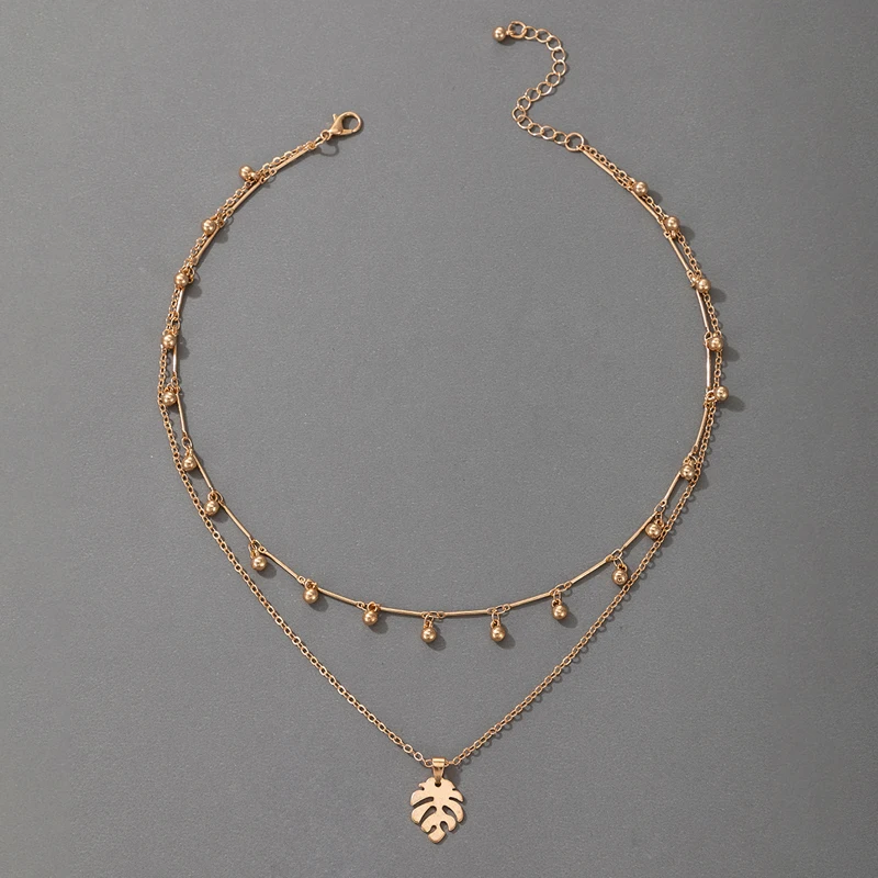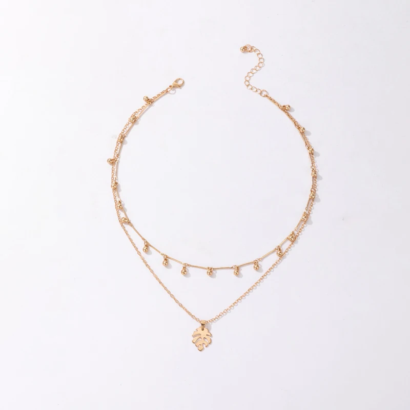 Fleepmart Bohemian Leaf Pendant Neckalce for Women Charms Tassel Multilayer Chain Choker Adjustable Jewelry Accessories Collar