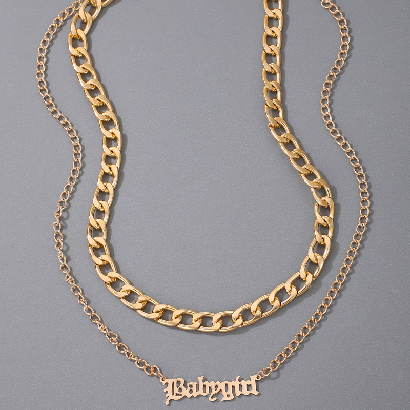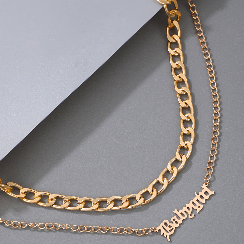fleepmart Bohemian Letter Neckalce for Women Punk Gold Color Alloy Metal Sweater Chain Choker Adjustable Jewelry Accessories