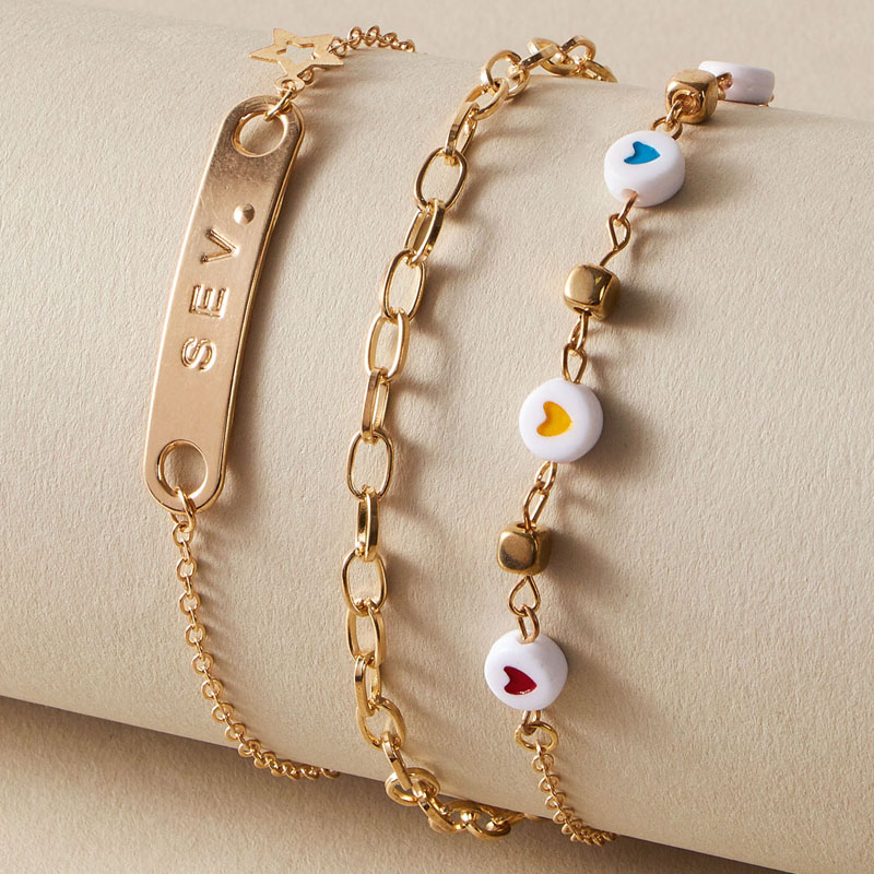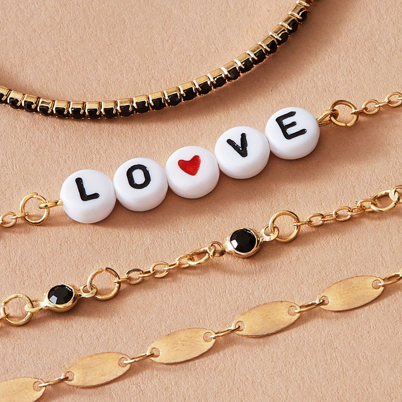 Fleepmart Bohemian Love Bead Bracelets for Women Black Rhinestone Geometric Gold Color Alloy Meal Jewelry Gift Wholesale