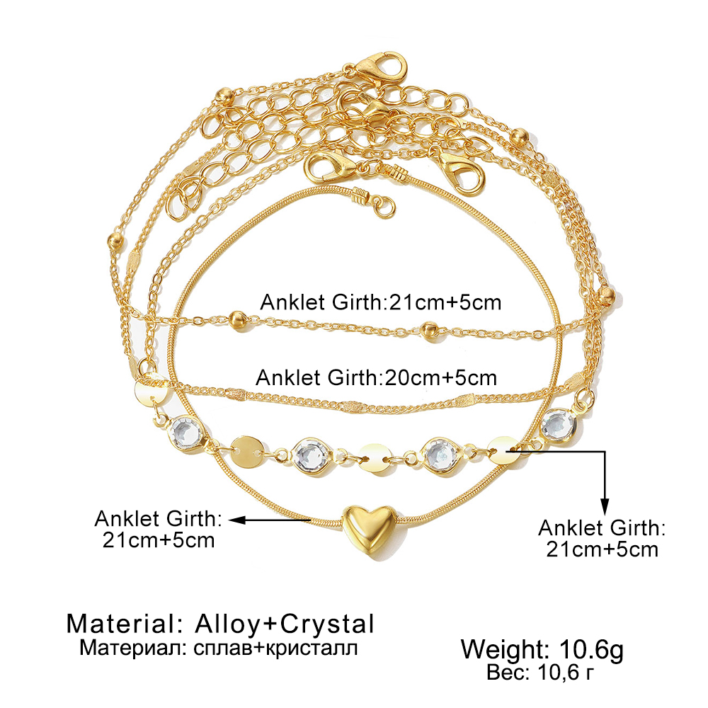 Fleepmart Bohemian Love Heart Women Anklet Vintage Gold Multilayer Bead Chain Ankle Foot Anklet Women Summer Jewelry Accessories
