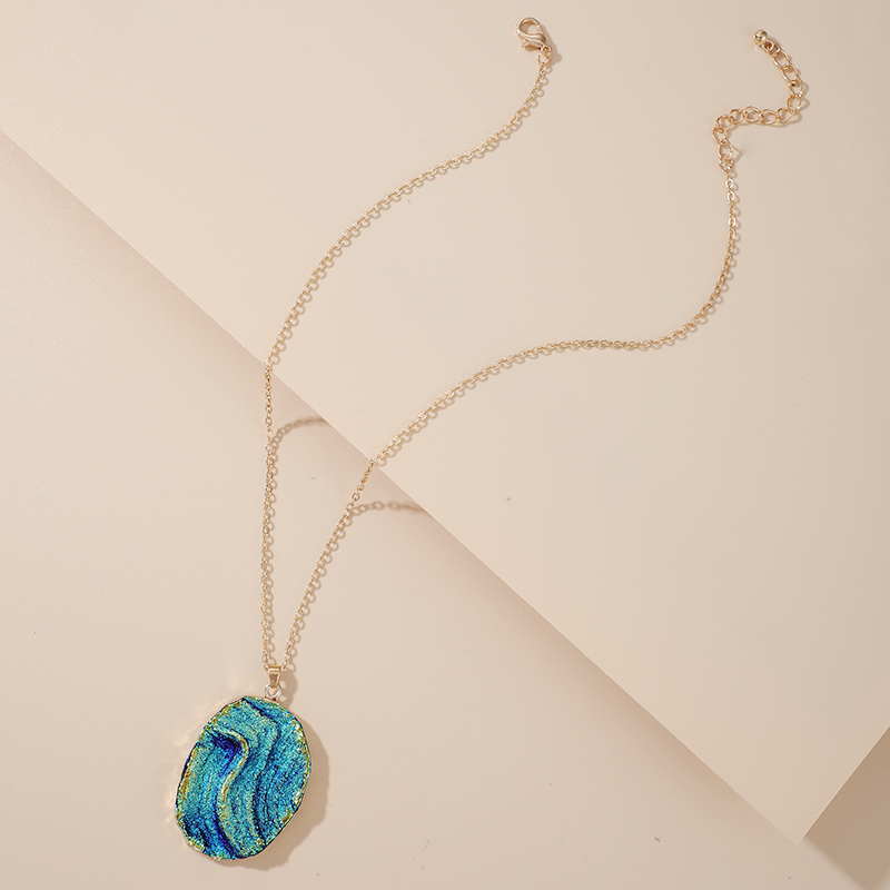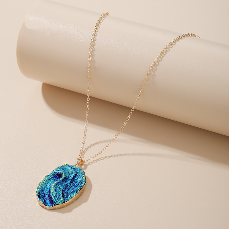 Fleepmart Bohemian Luxury Blue Stone Pendant Necklace for Women INS Trendy Gold Chain Adjustable Jewelry Gift