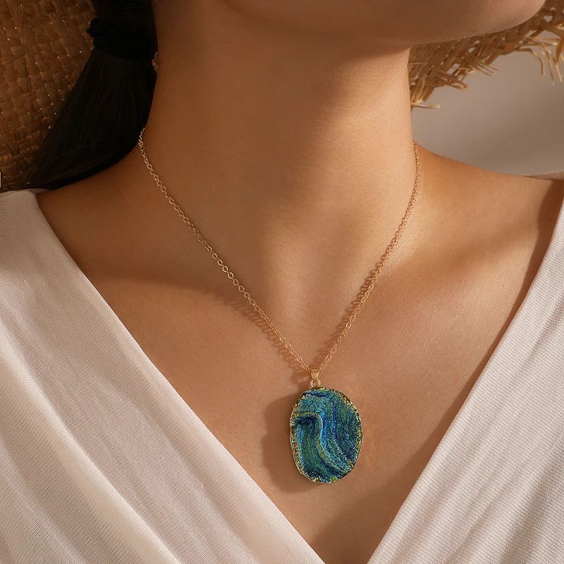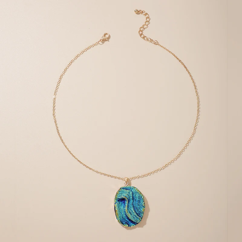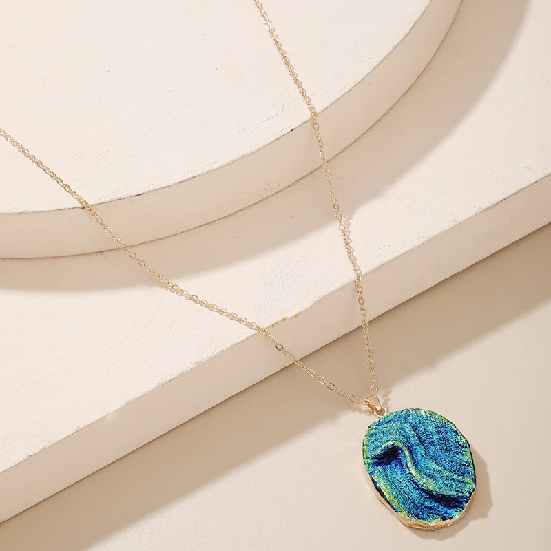 Fleepmart Bohemian Luxury Blue Stone Pendant Necklace for Women INS Trendy Gold Chain Adjustable Jewelry Gift