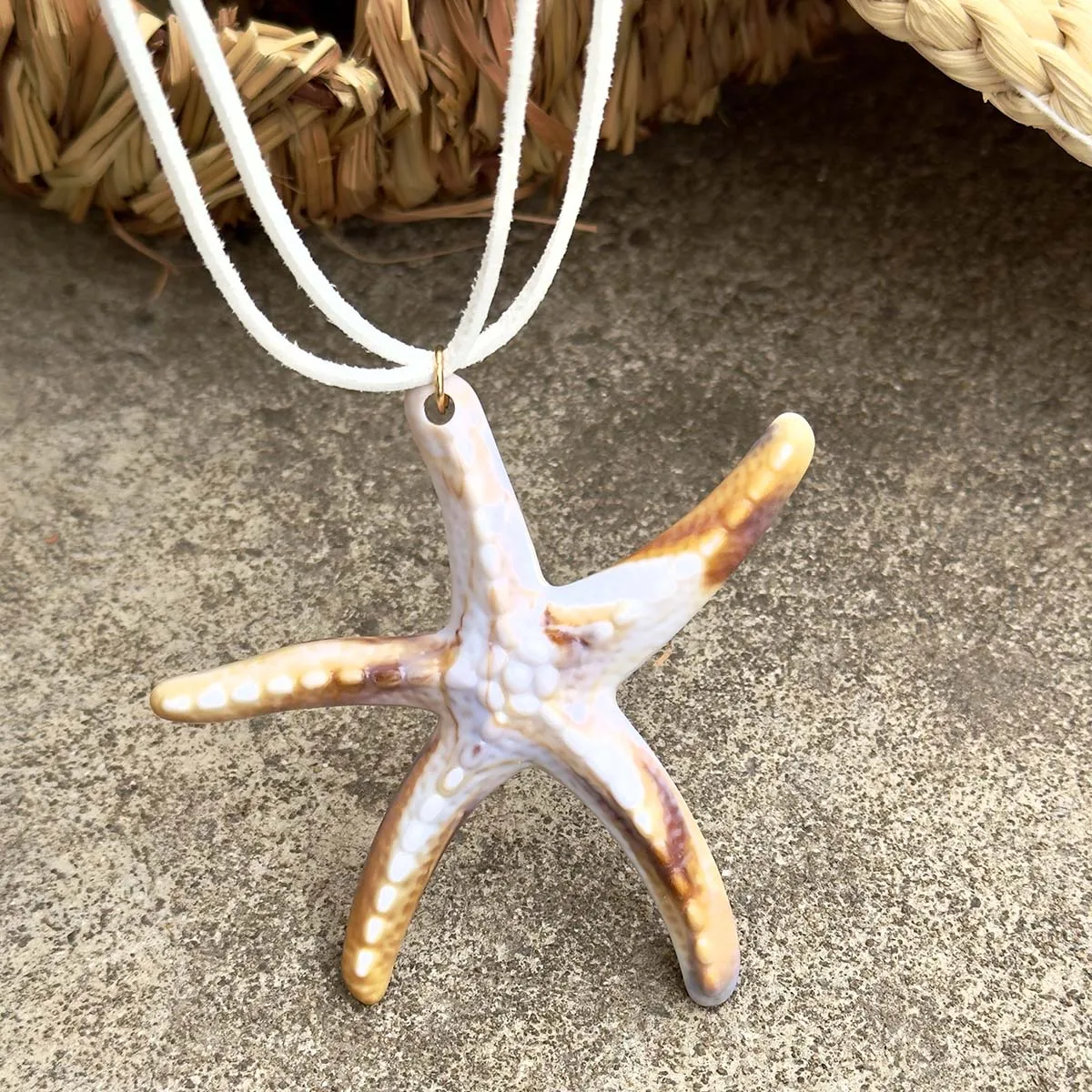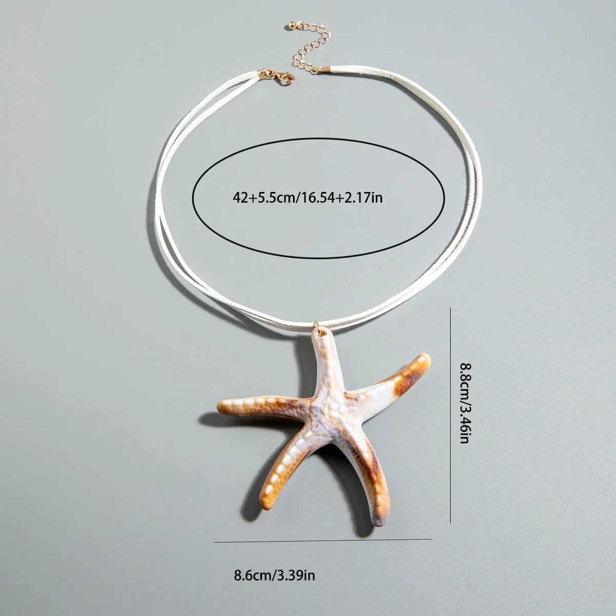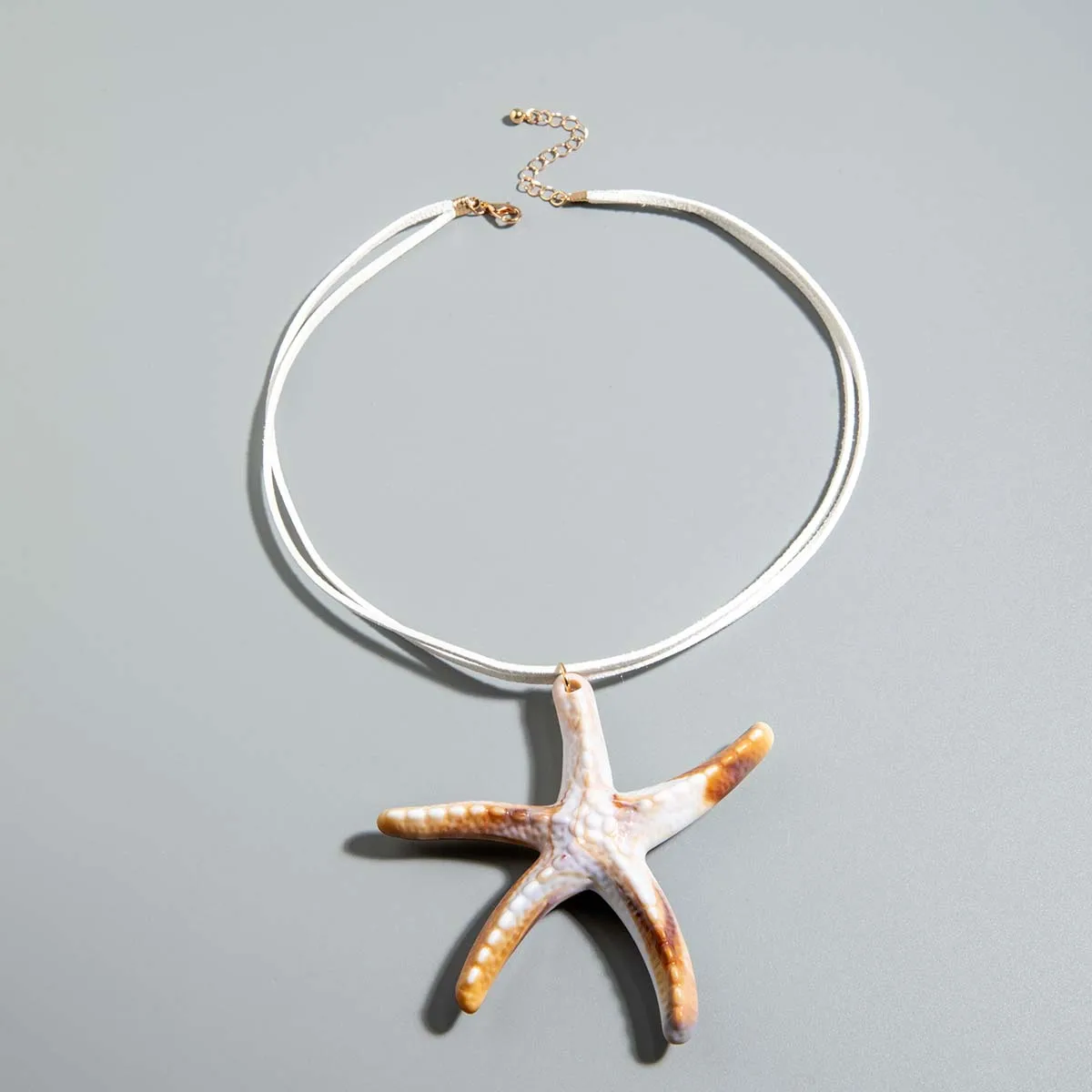 Fleepmart Bohemian Minimalist Starfish Pendant Necklace White Rope Collarbone Chain Women Beach Vacation Accessories Jewelry