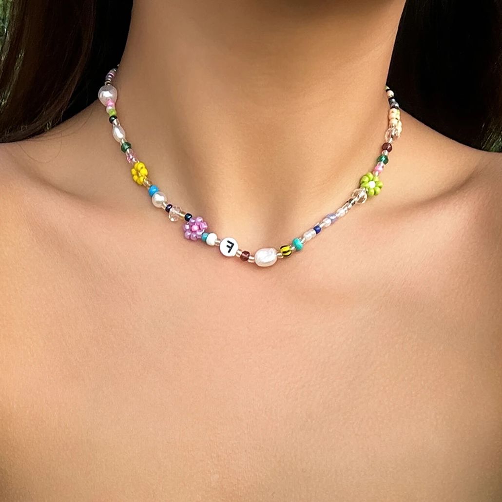 Fleepmart Bohemian Mixed Color Seed Beads Handmade Beaded Necklace Vintage Acrylic Beads Short Necklace Women’s Trend Y2K Jewelry