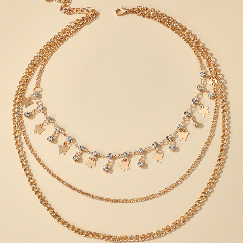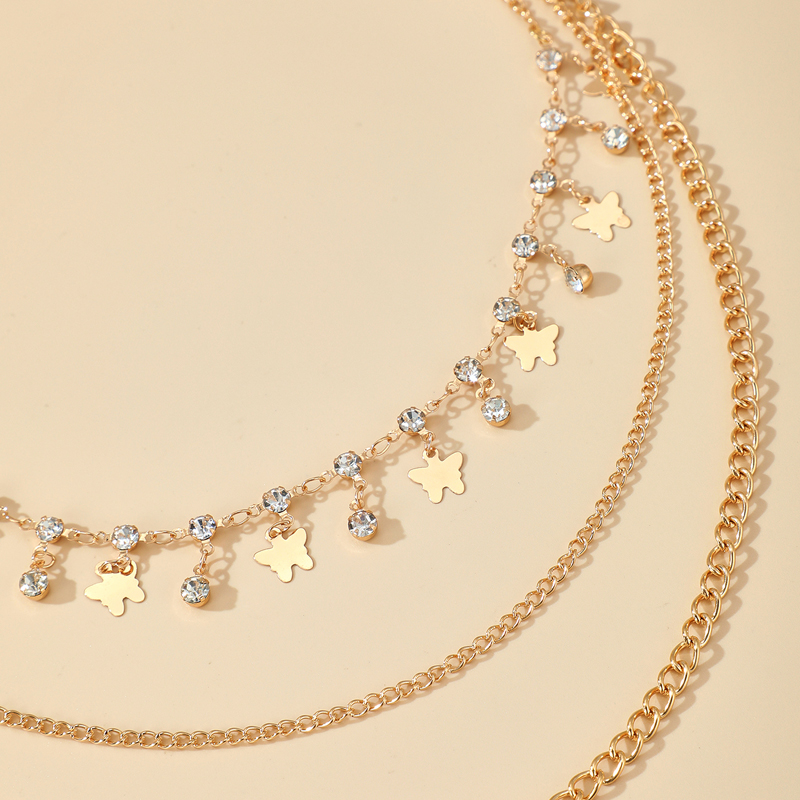 Fleepmart Bohemian Multi-layer Butterfly Necklace for Women Shiny Crystal Stone Gold Color Chain Choker Necklace Jewelry