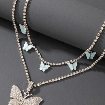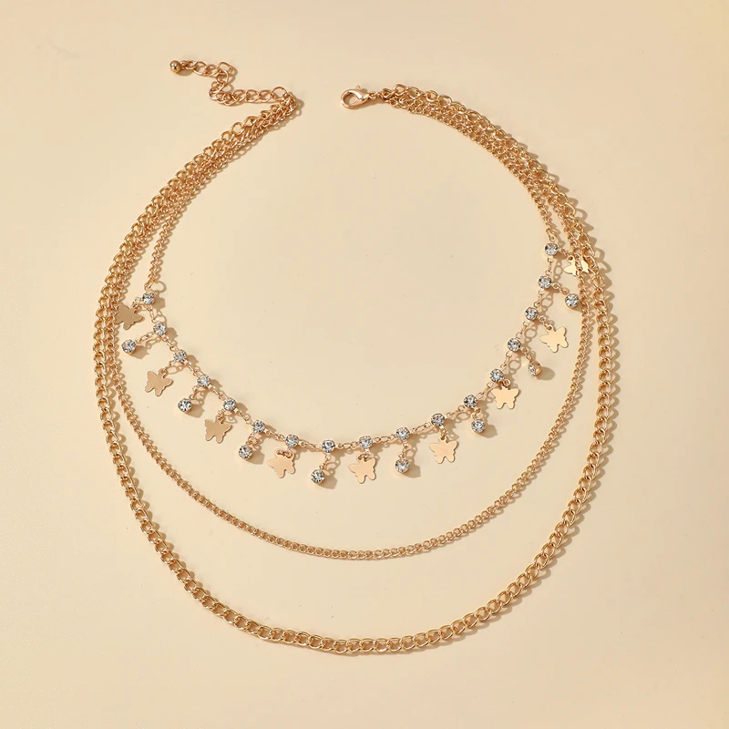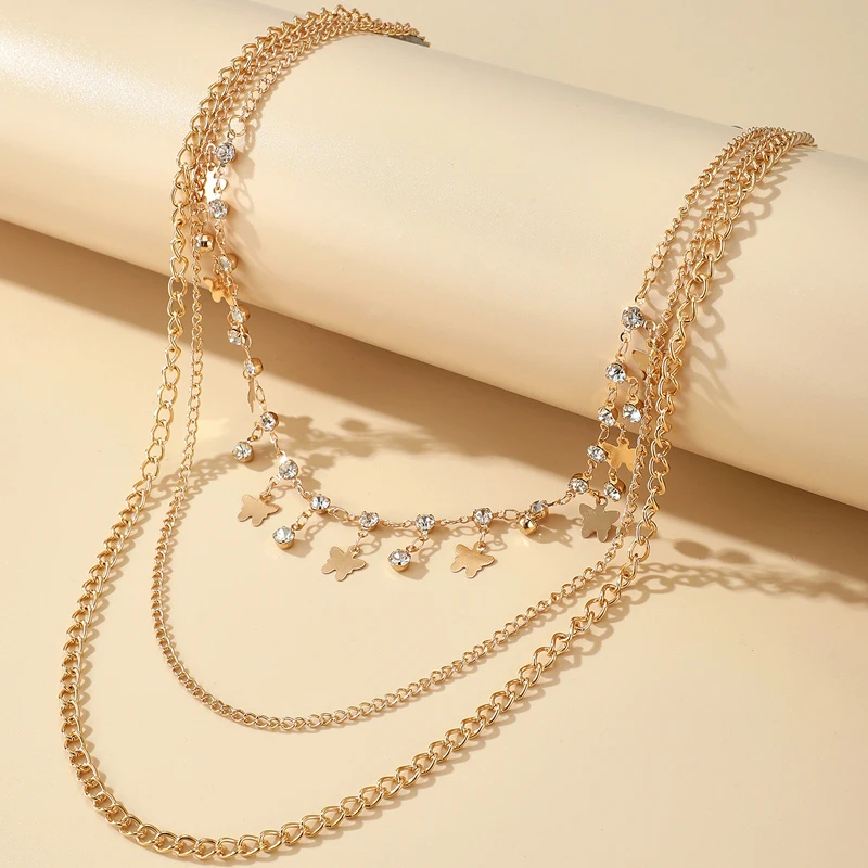 Fleepmart Bohemian Multi-layer Butterfly Necklace for Women Shiny Crystal Stone Gold Color Chain Choker Necklace Jewelry