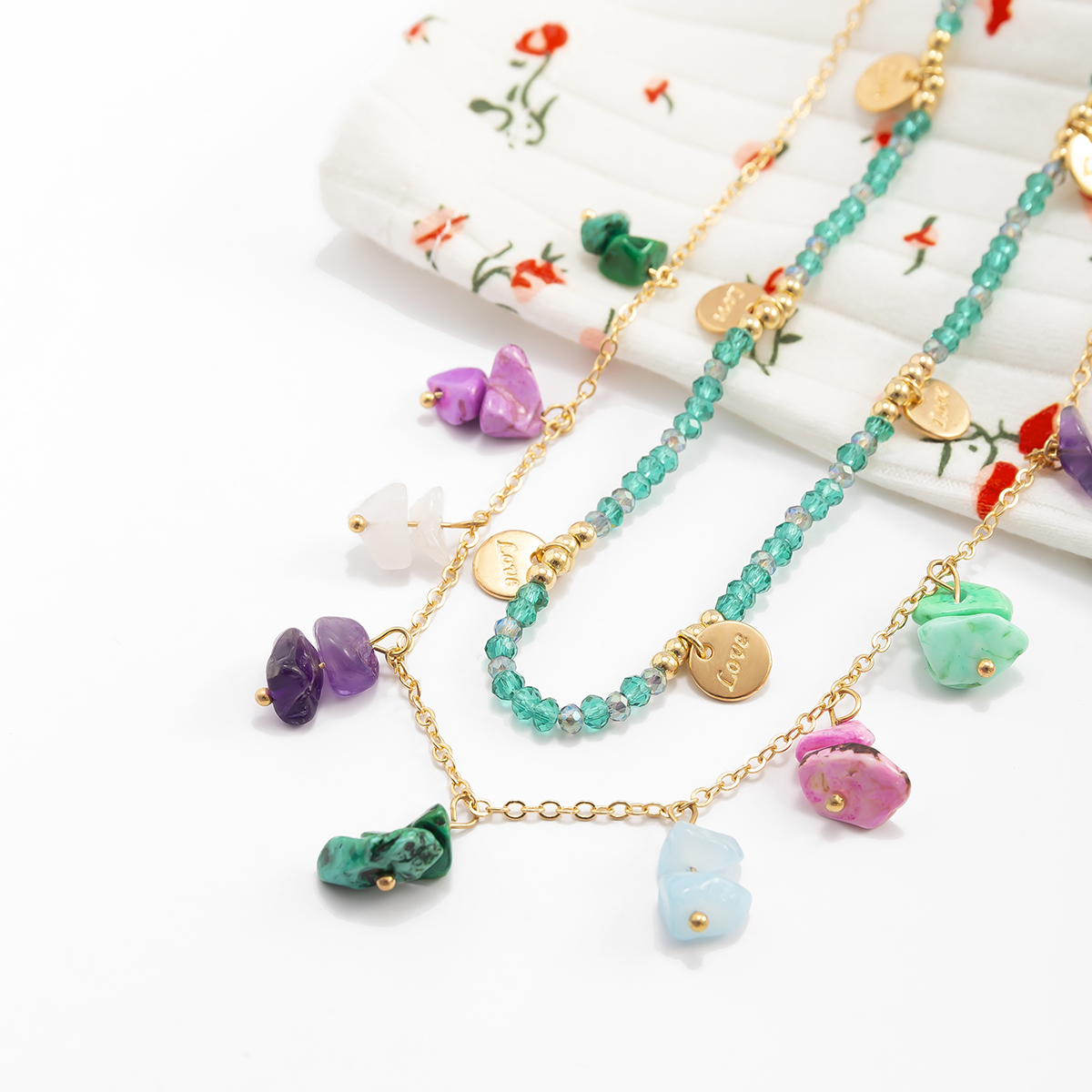 Fleepmart Bohemian Natural Irregular Stone Beads Pendant Necklace For Women Colorful Crystal Stone Small Disc Choker Necklaces