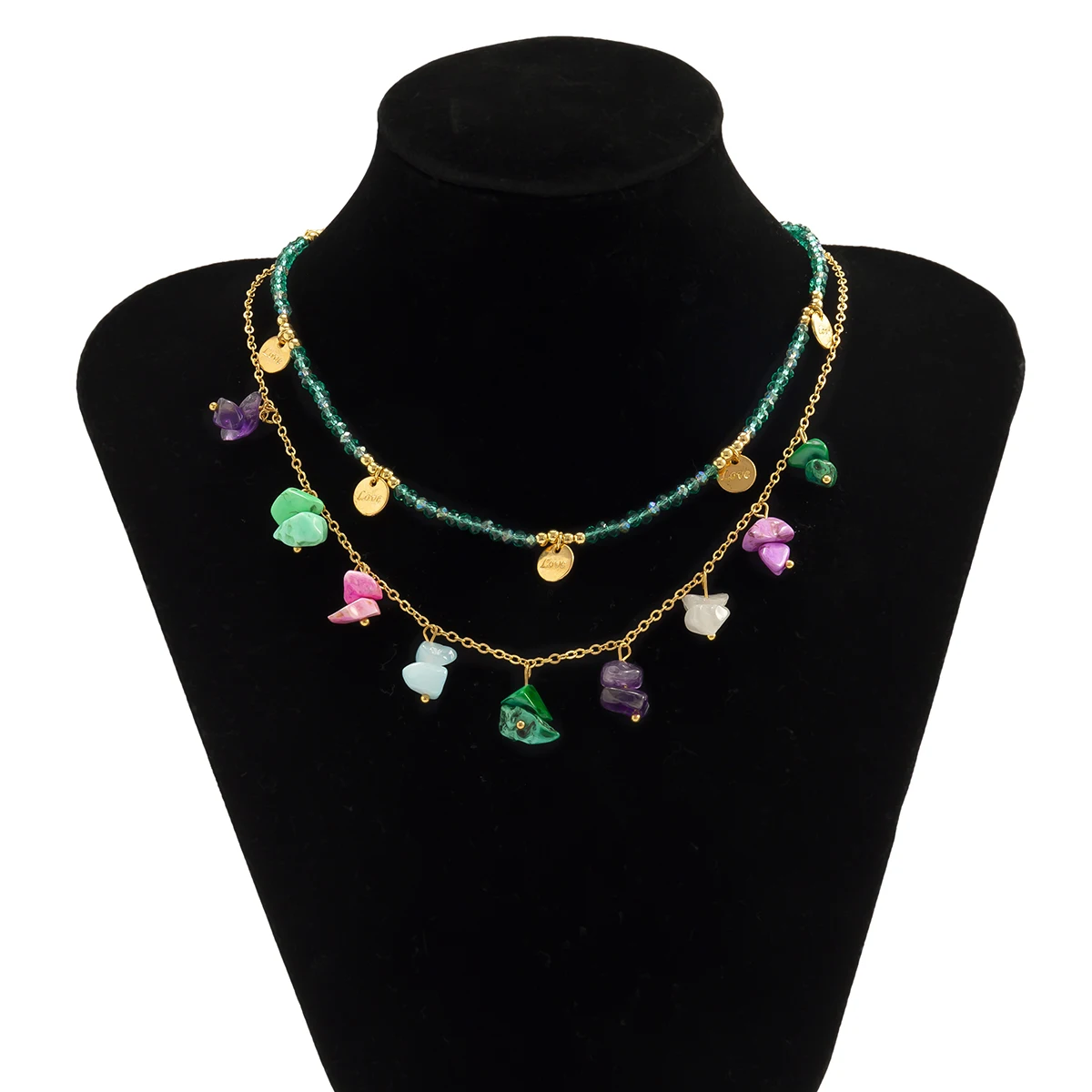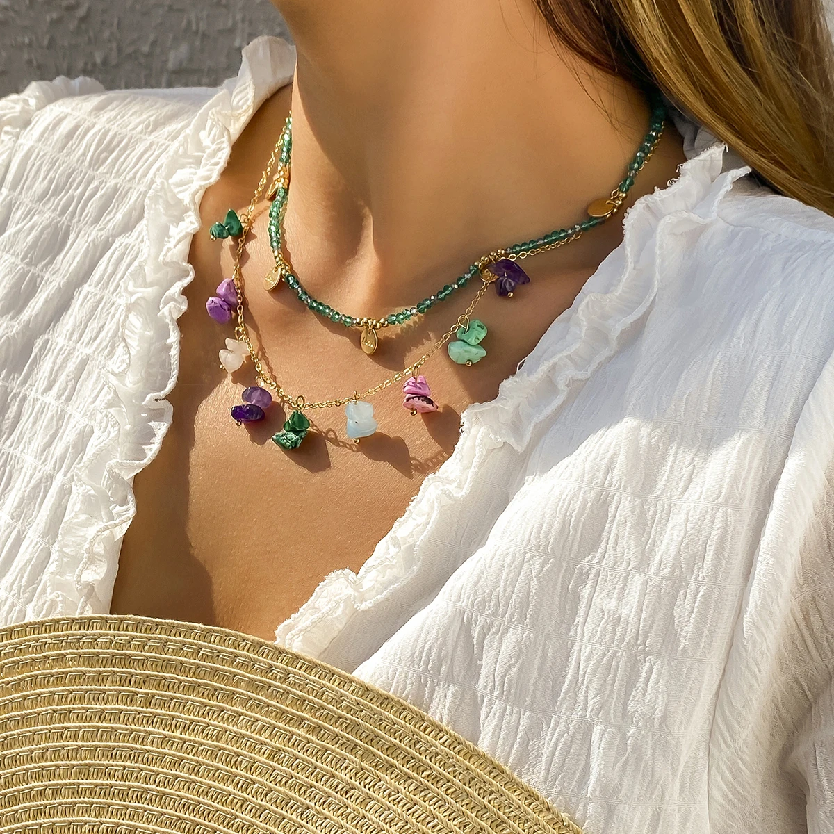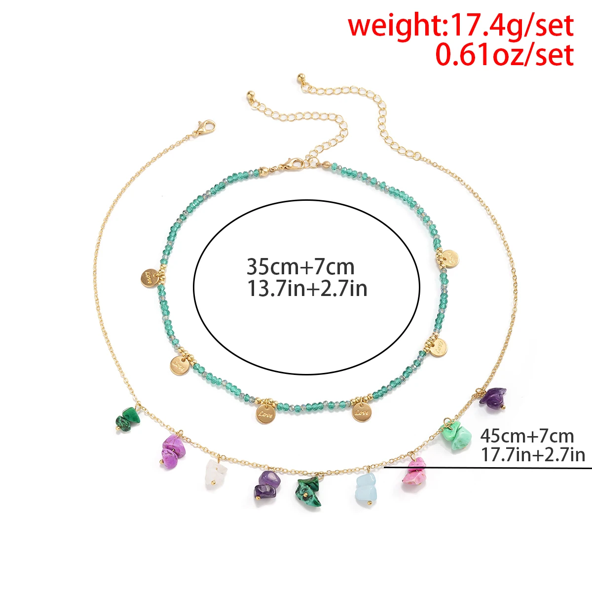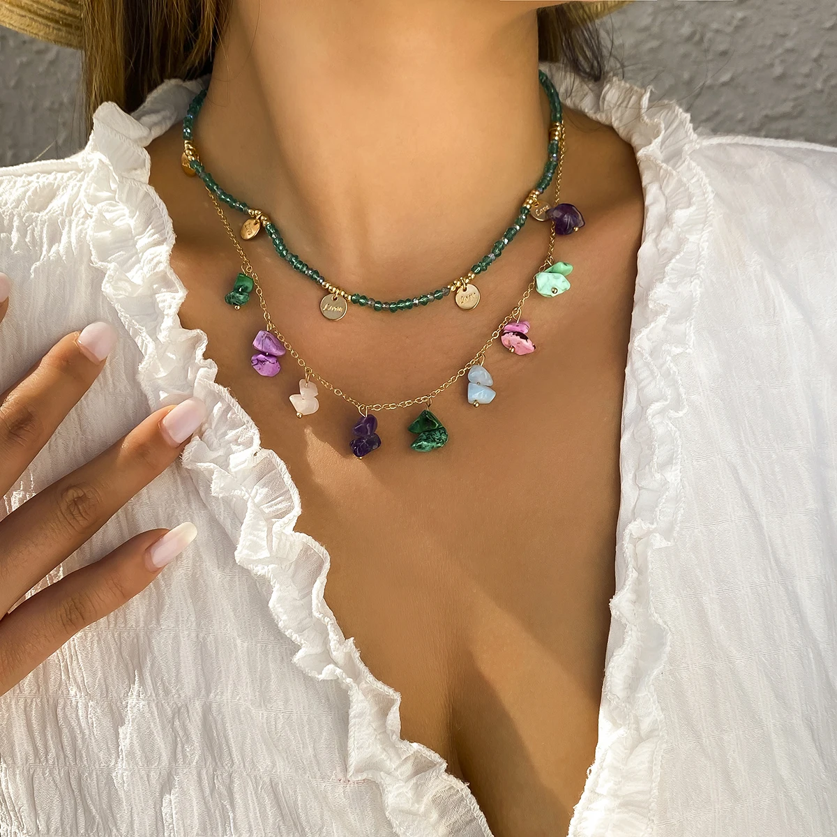 Fleepmart Bohemian Natural Irregular Stone Beads Pendant Necklace For Women Colorful Crystal Stone Small Disc Choker Necklaces