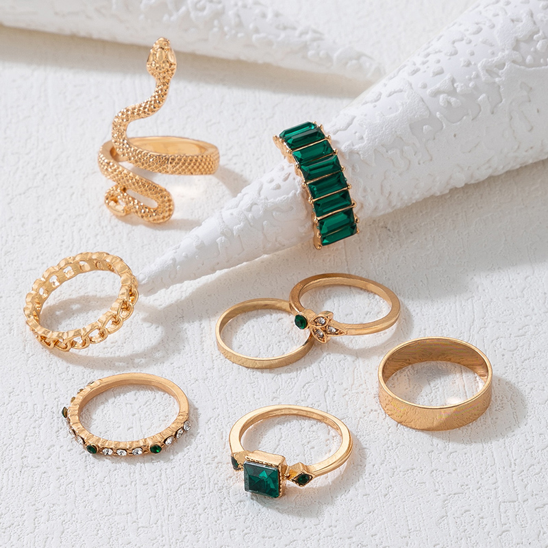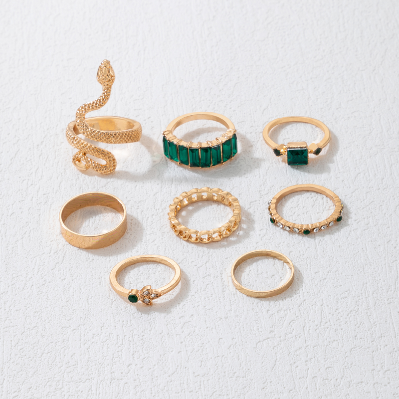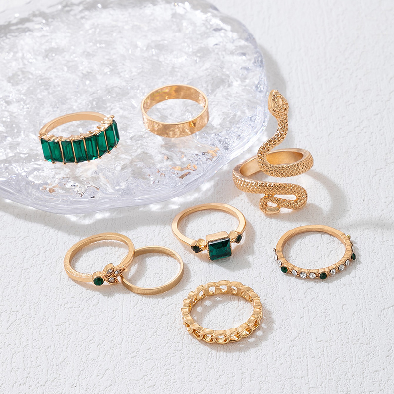 Fleepmart Bohemian Snake Joint Ring Sets Luxury Green Crystal Stone Leaf Geometry for Women Men Jewelry 8pcs/sets