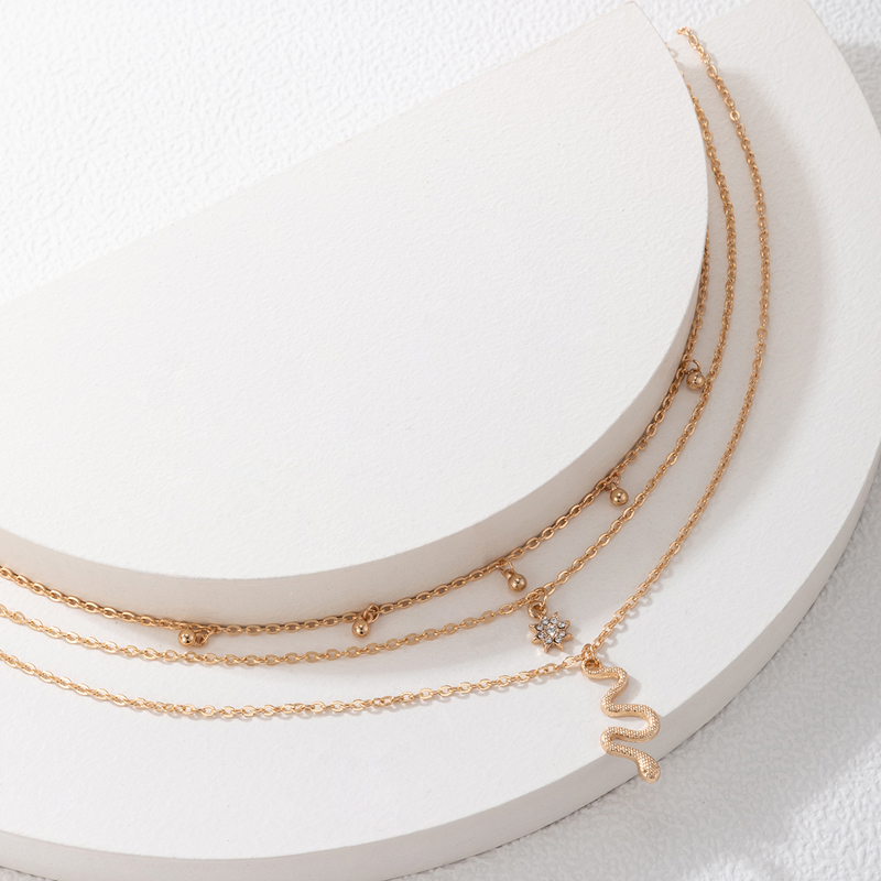 Fleepmart Bohemian Snake Pendant Neckalce for Women Charms Shiny Crystal Stone Multi-layered Clavicle Chain Jewelry Collar