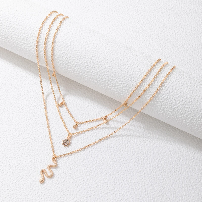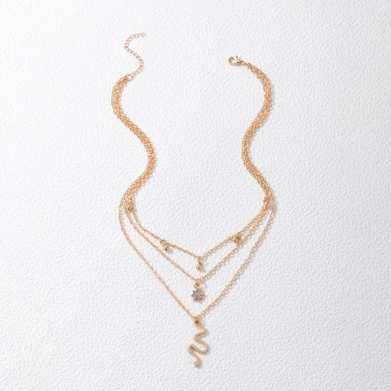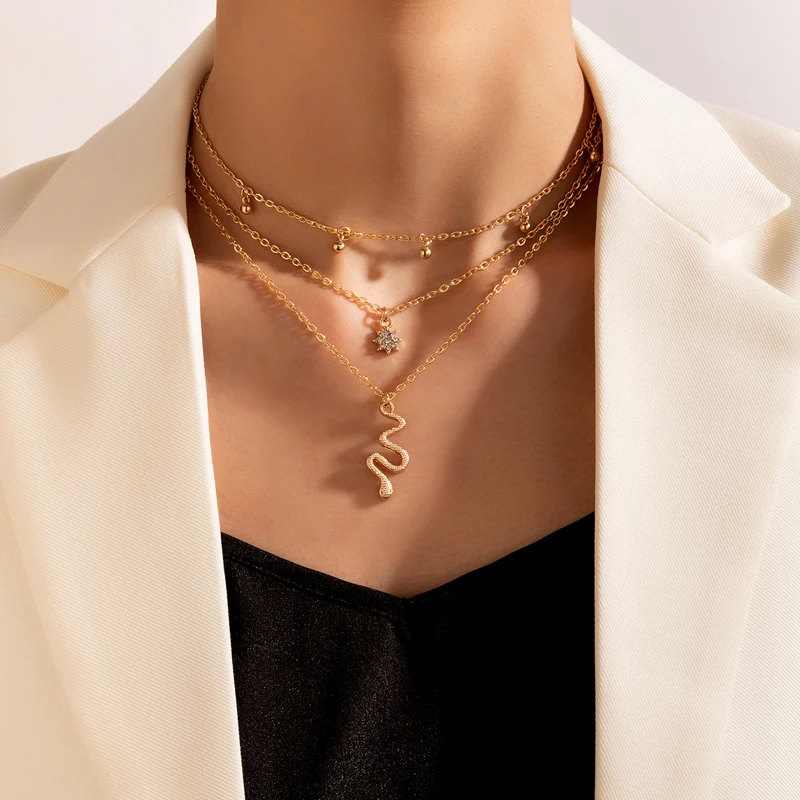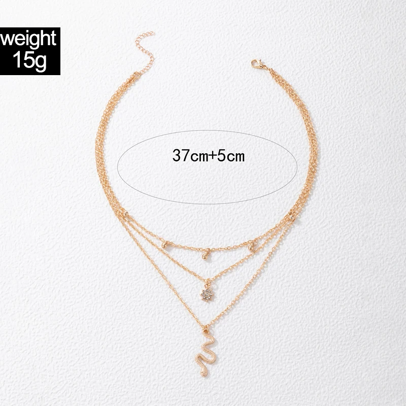 Fleepmart Bohemian Snake Pendant Neckalce for Women Charms Shiny Crystal Stone Multi-layered Clavicle Chain Jewelry Collar