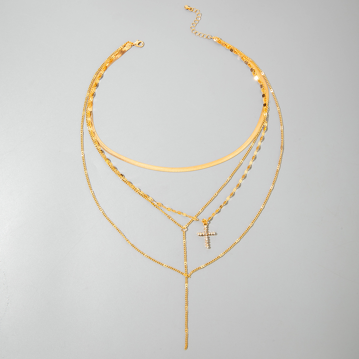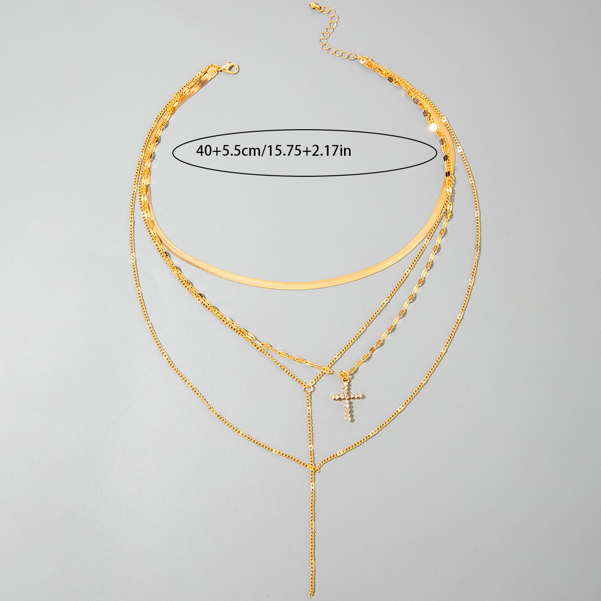 Fleepmart Bohemian Sparkling Water Diamond Cross Pendant Necklace Women’s Retro Multi Layer Necklace Jewelry Festival Party Gift
