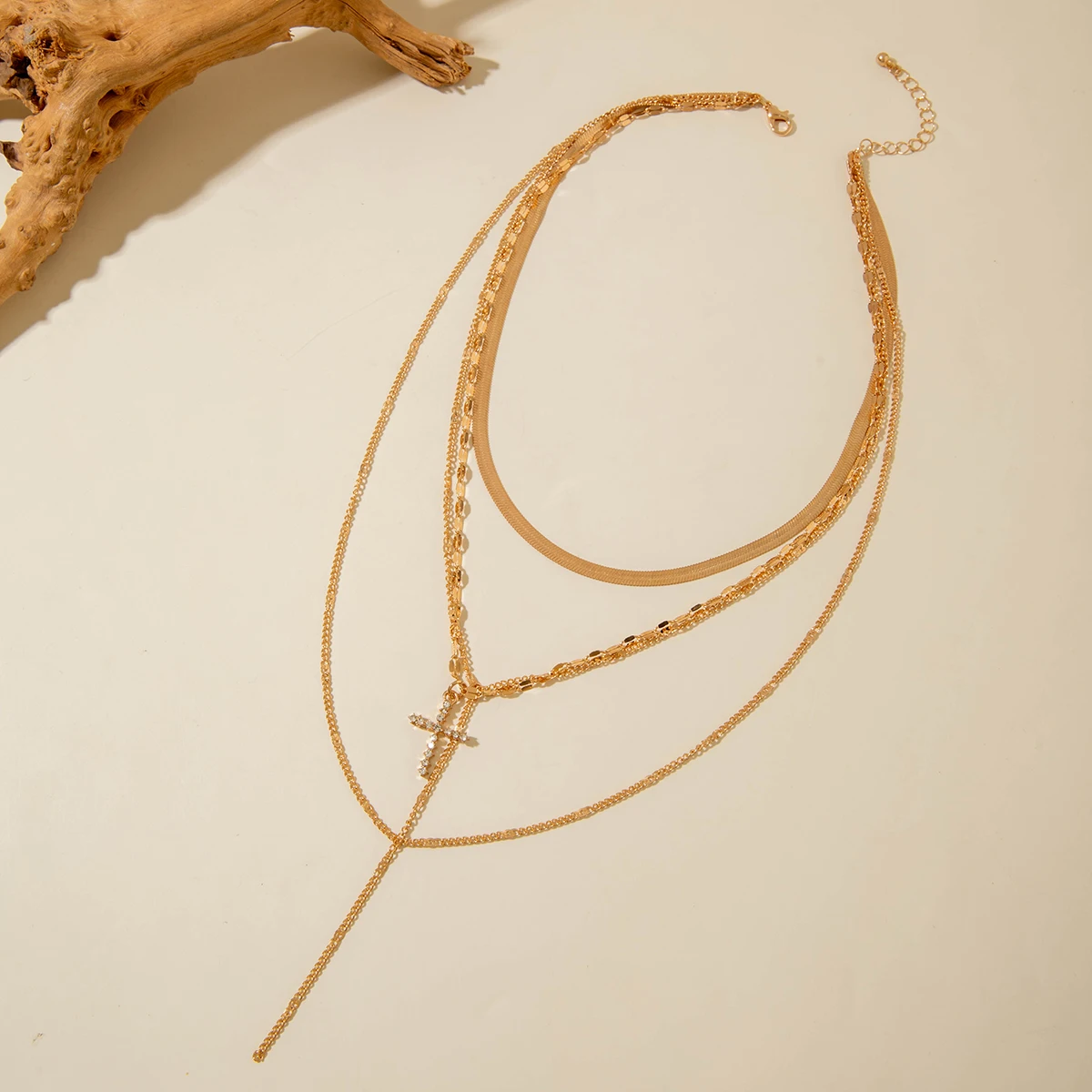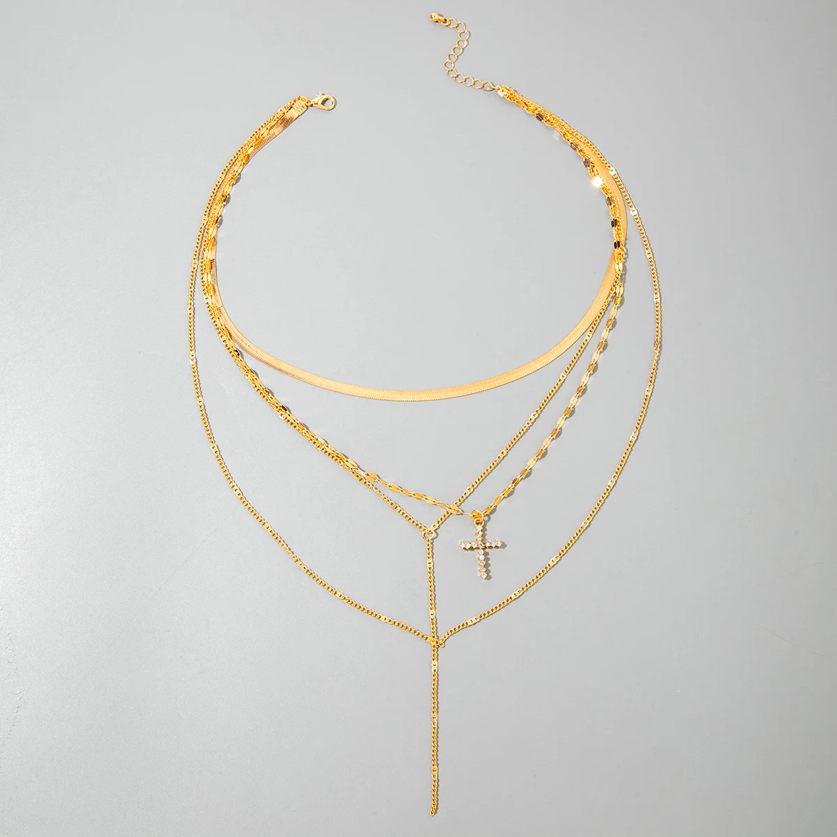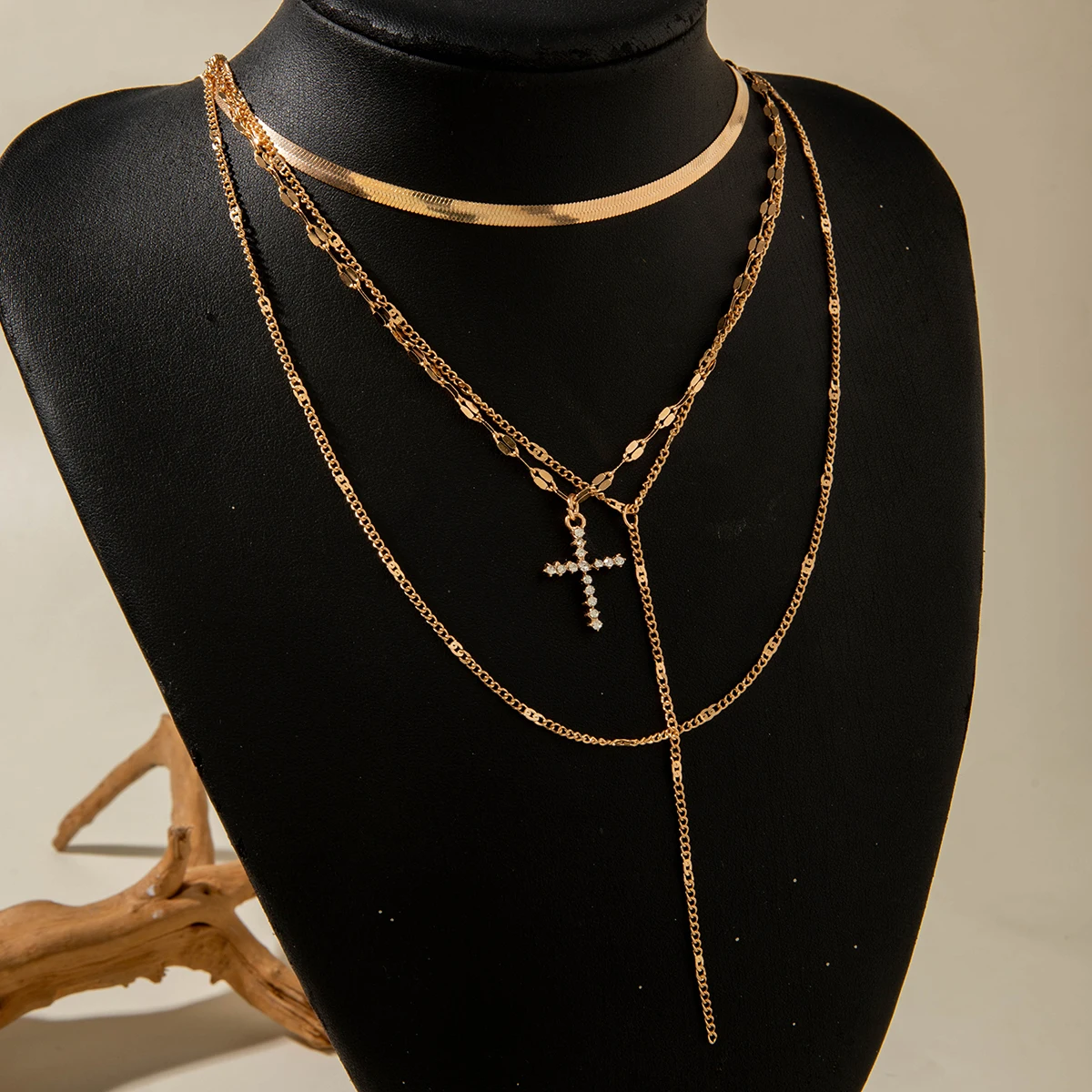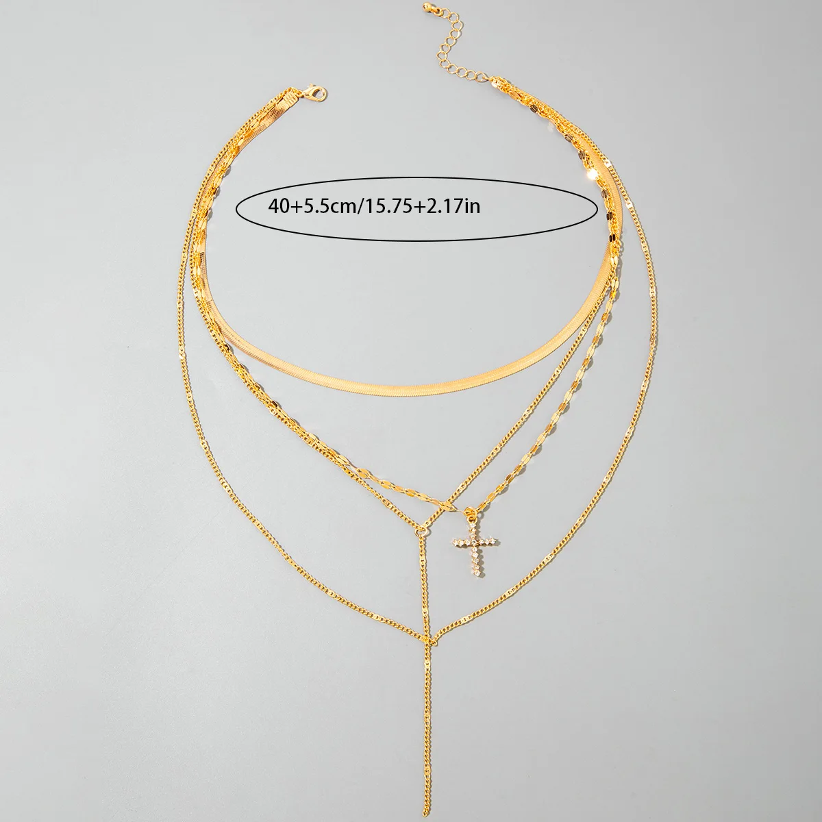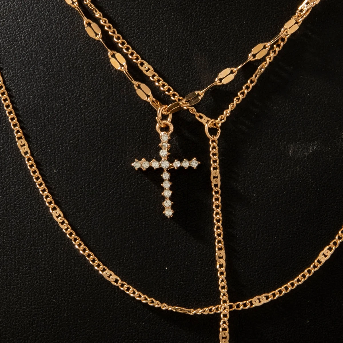 Fleepmart Bohemian Sparkling Water Diamond Cross Pendant Necklace Women’s Retro Multi Layer Necklace Jewelry Festival Party Gift