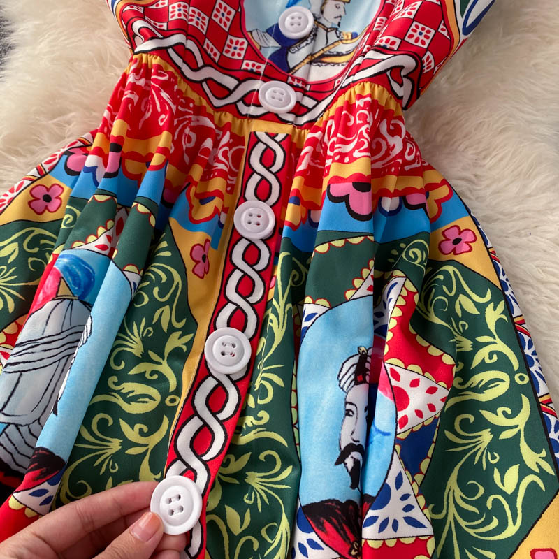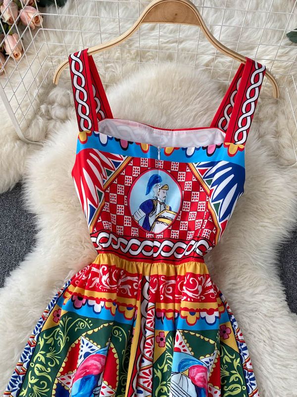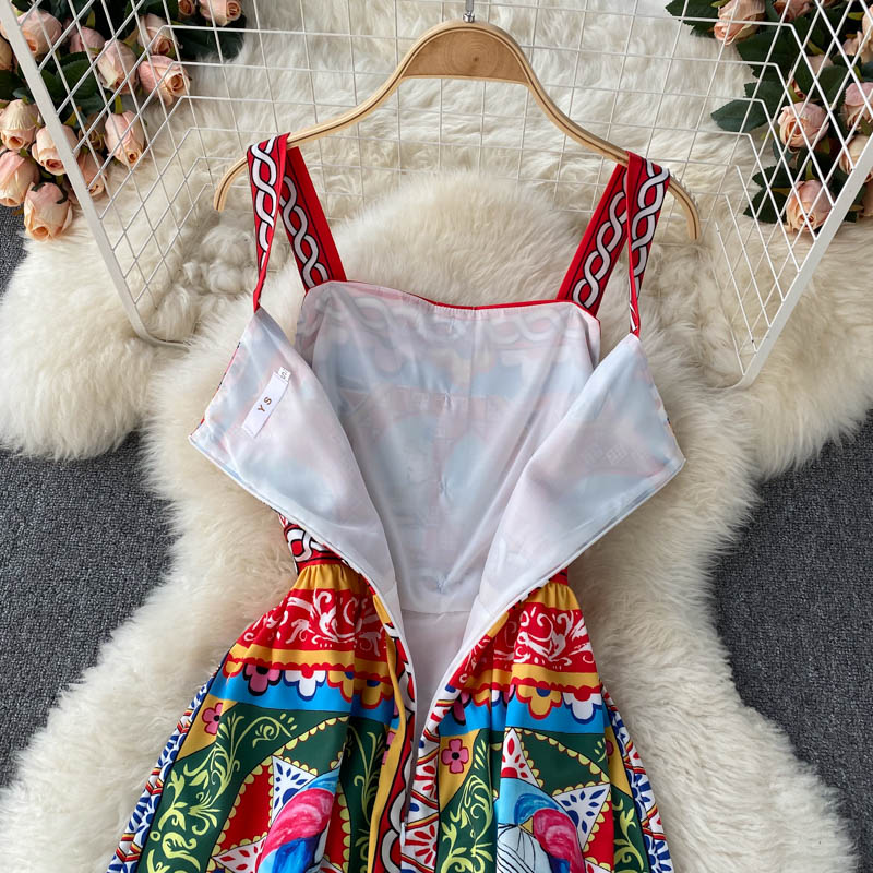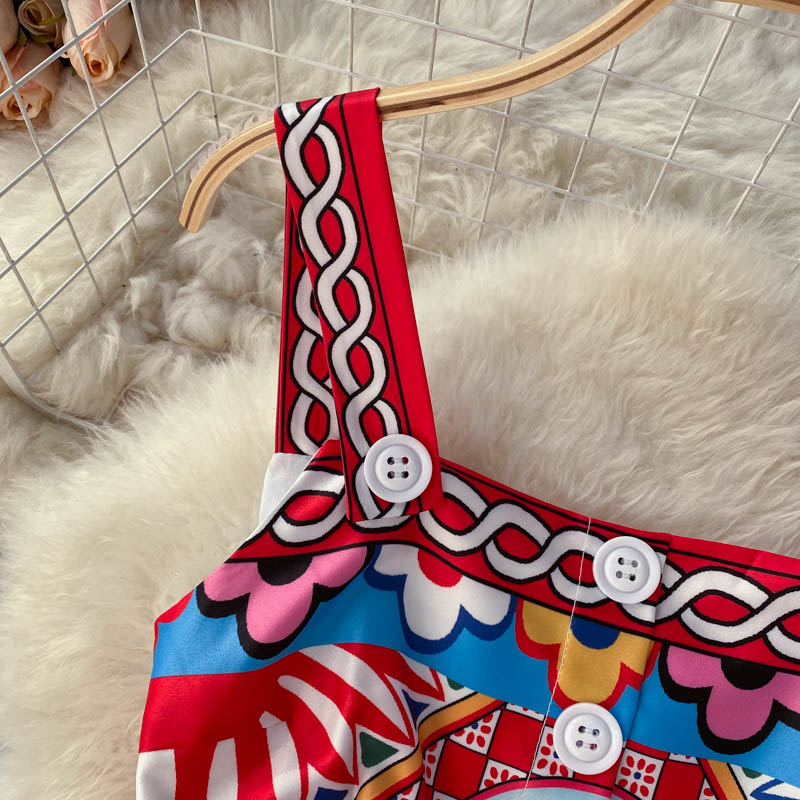 Fleepmart Bohemian Summer Women Spaghetti Strap Dress 2024Runway Fahsion Flower Print Bow Long Beach Party Vacation Camisole