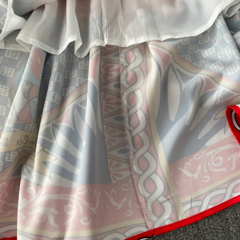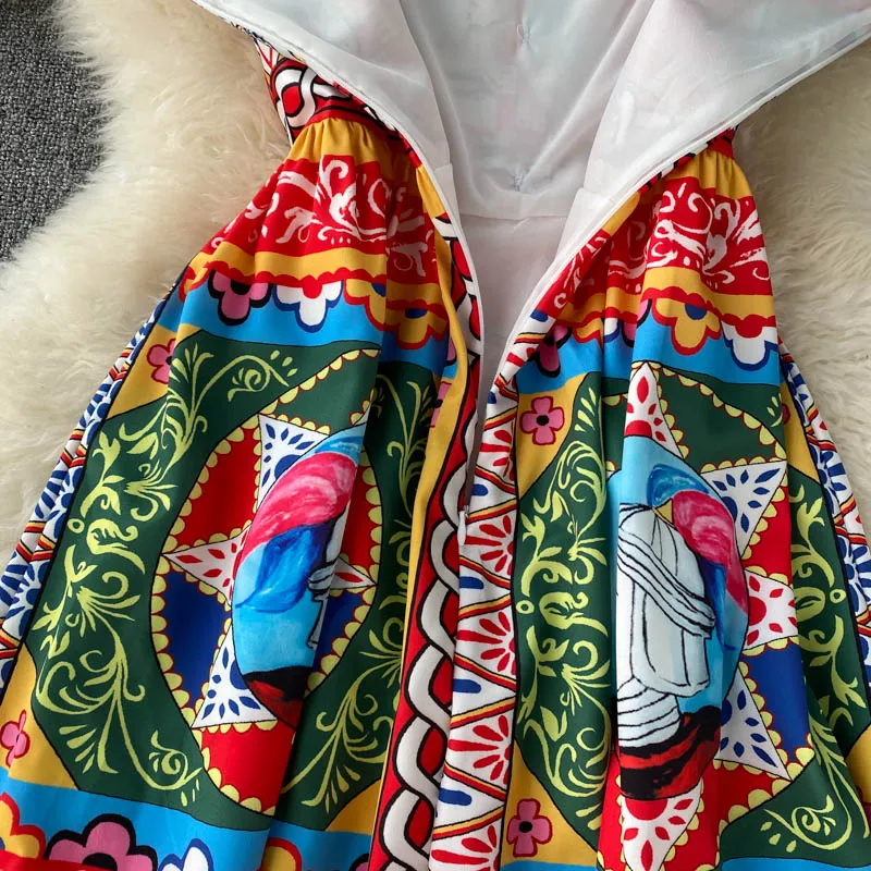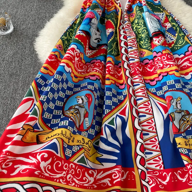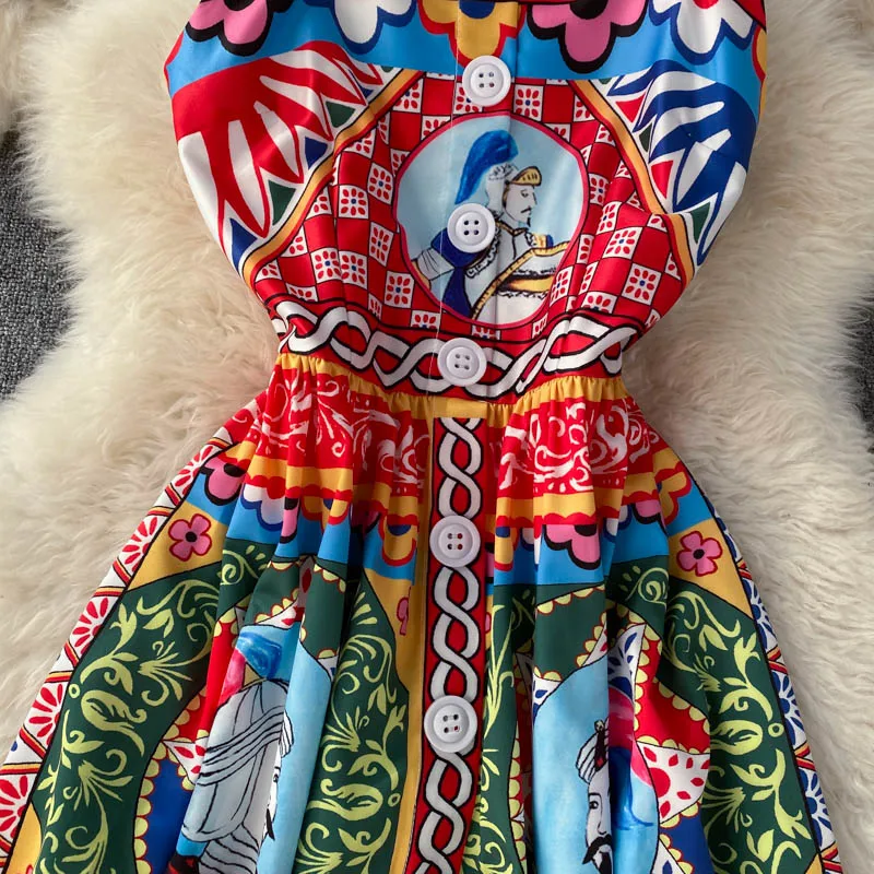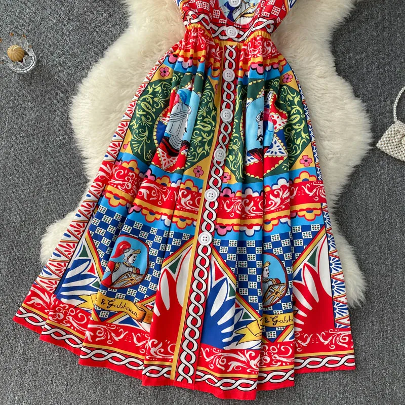 Fleepmart Bohemian Summer Women Spaghetti Strap Dress 2024Runway Fahsion Flower Print Bow Long Beach Party Vacation Camisole