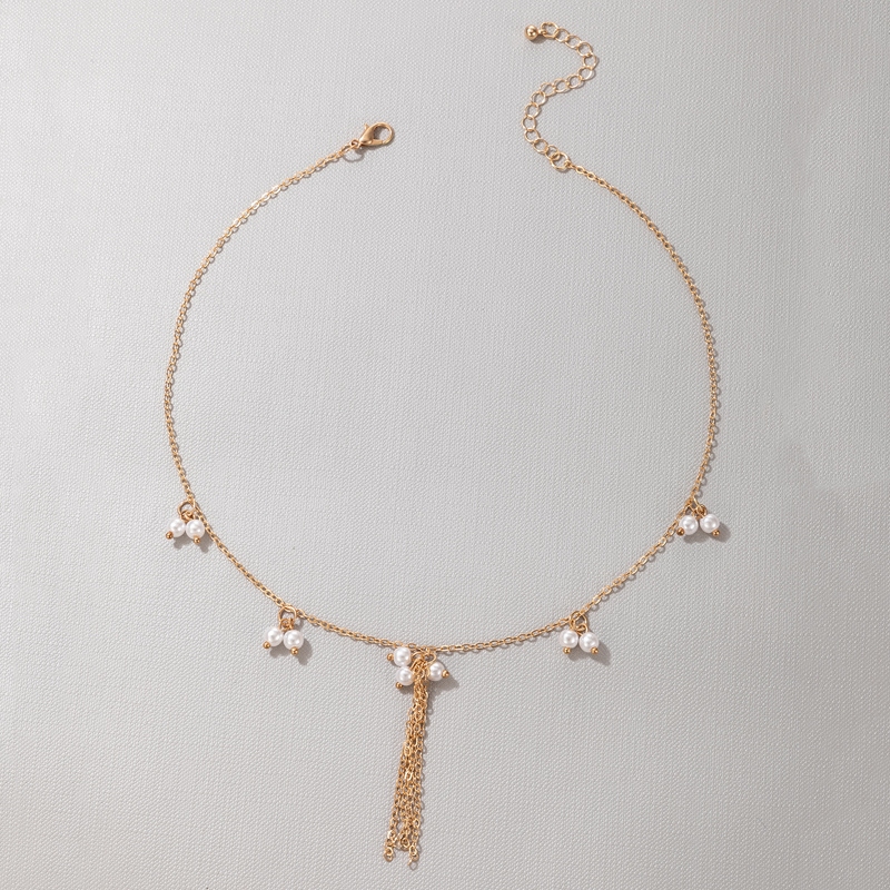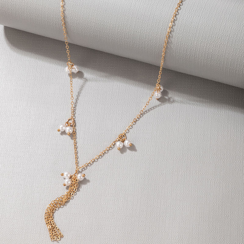 Fleepmart Bohemian Tassel Pendant Necklace for Women Charms Pearl Stone Gold Alloy Metal Adjustable Party Jewelry Collar