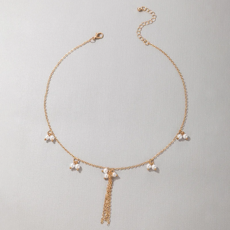 Fleepmart Bohemian Tassel Pendant Necklace for Women Charms Pearl Stone Gold Alloy Metal Adjustable Party Jewelry Collar