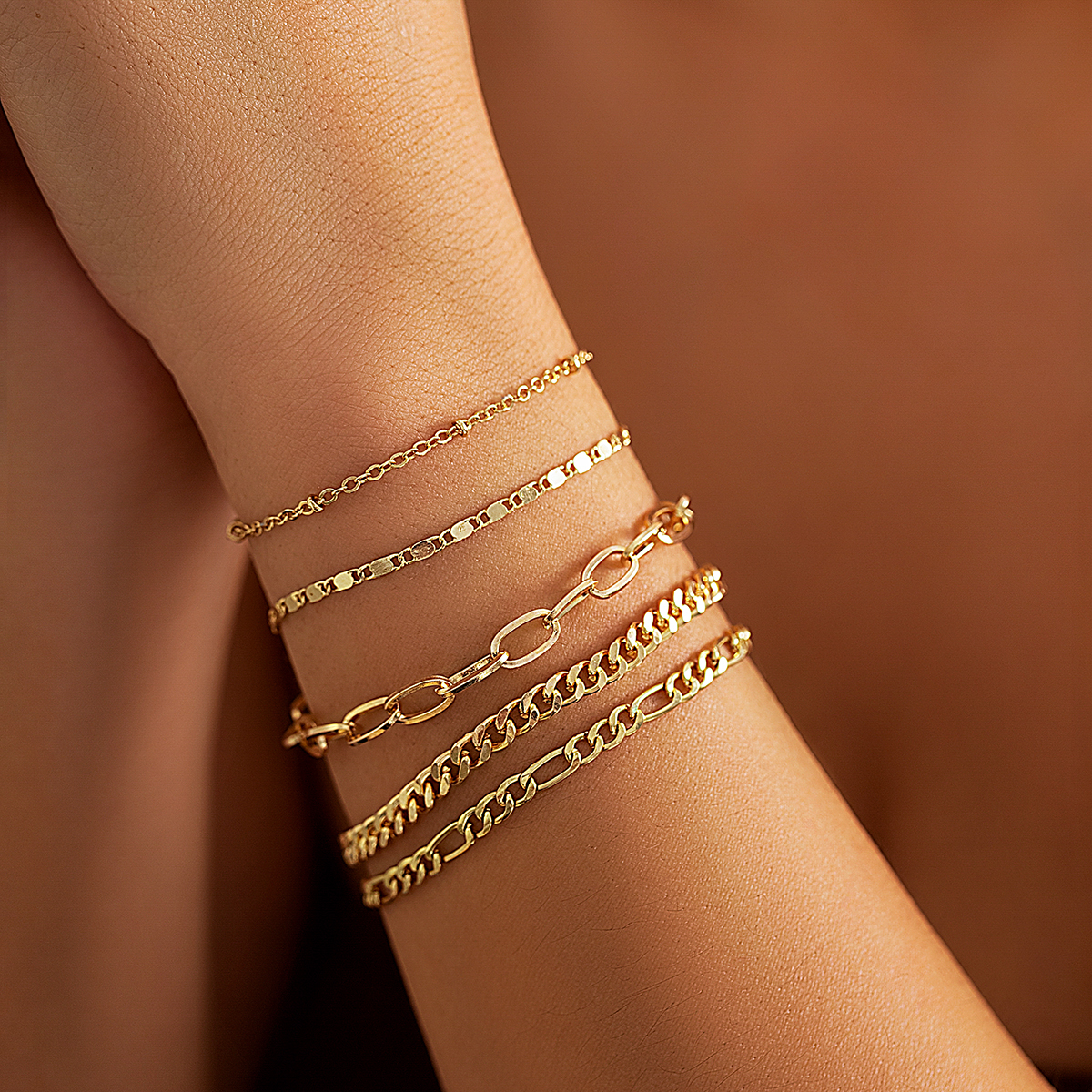 Fleepmart Bohemian Trend Multi layered Fine Metal Chain Bracelet Retro Aesthetics Link Chain Bracelet Women’s Charm Jewelry Gift