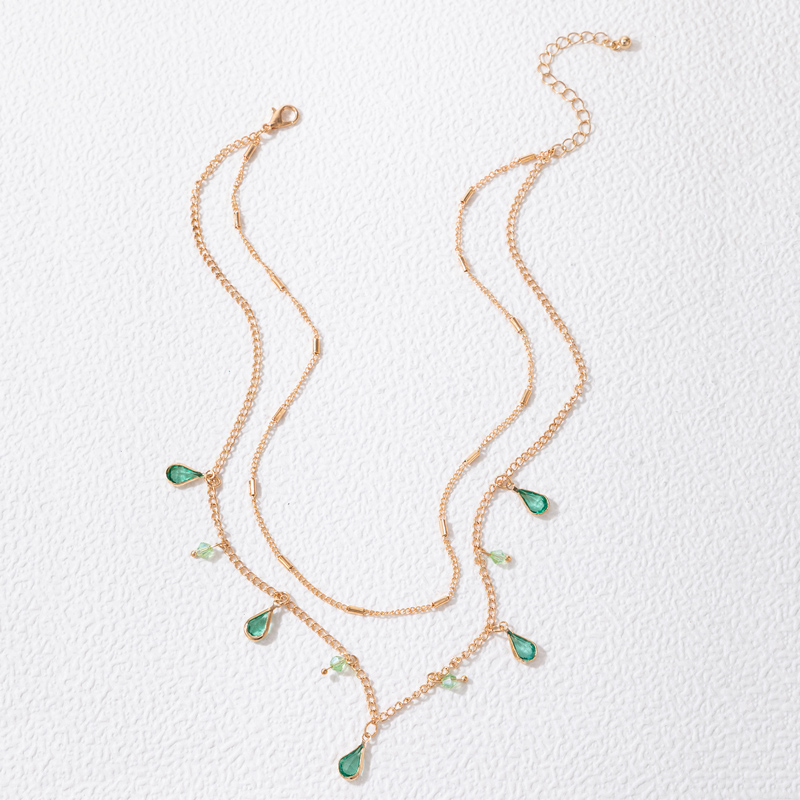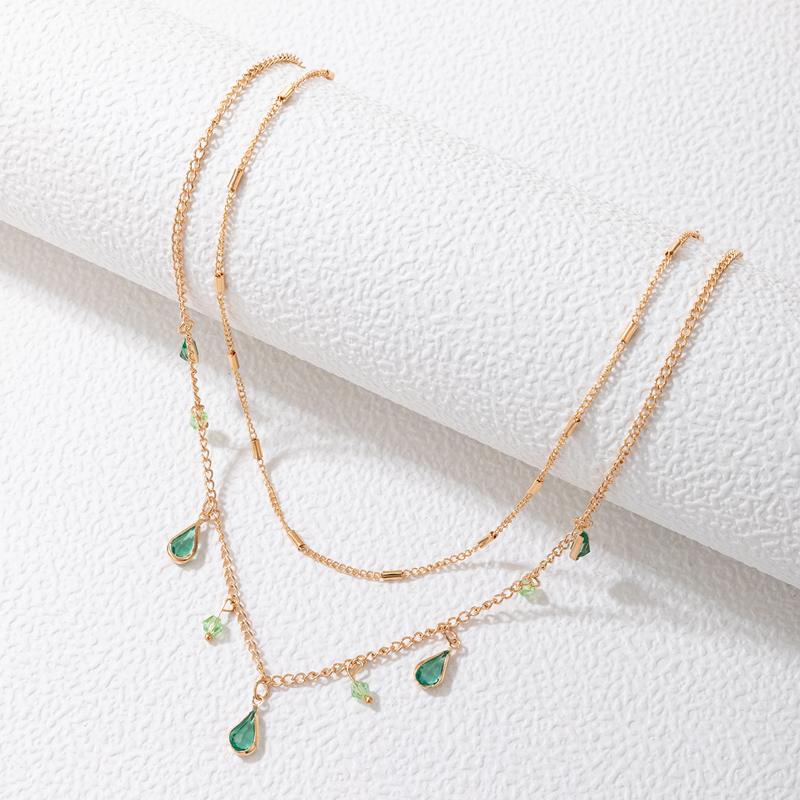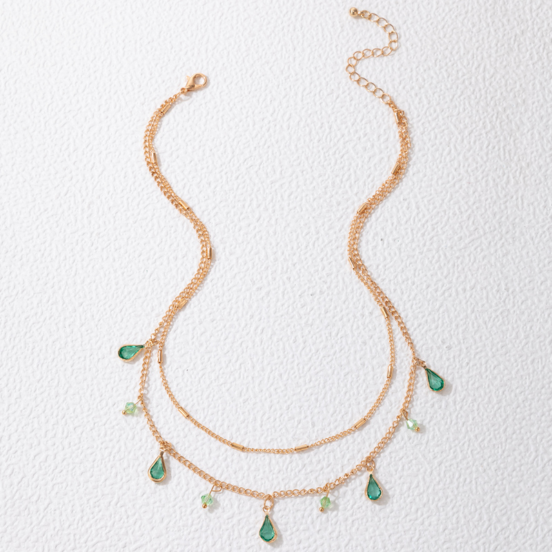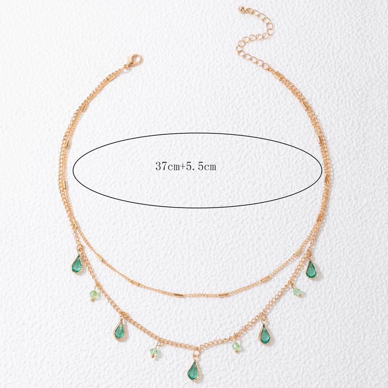 Fleepmart Bohemian Water Drop Green Rhinestone Chain Necklace for Women Gold Alloy Metal Trendy Jewelry Gift