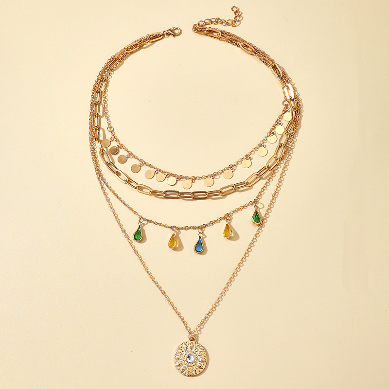 Fleepmart Boho Kalung Liontin Kristal Warna-warni Bentuk Tetesan Air untuk Wanita Kalung Lapis Emas Perhiasan Pesta Wanita |