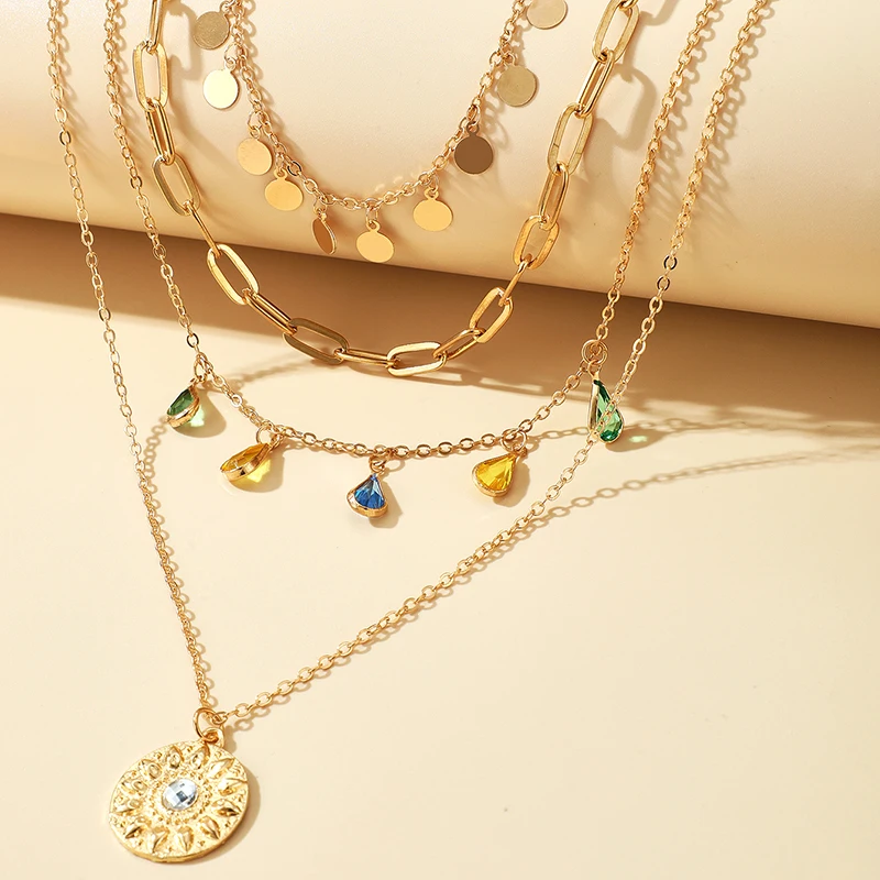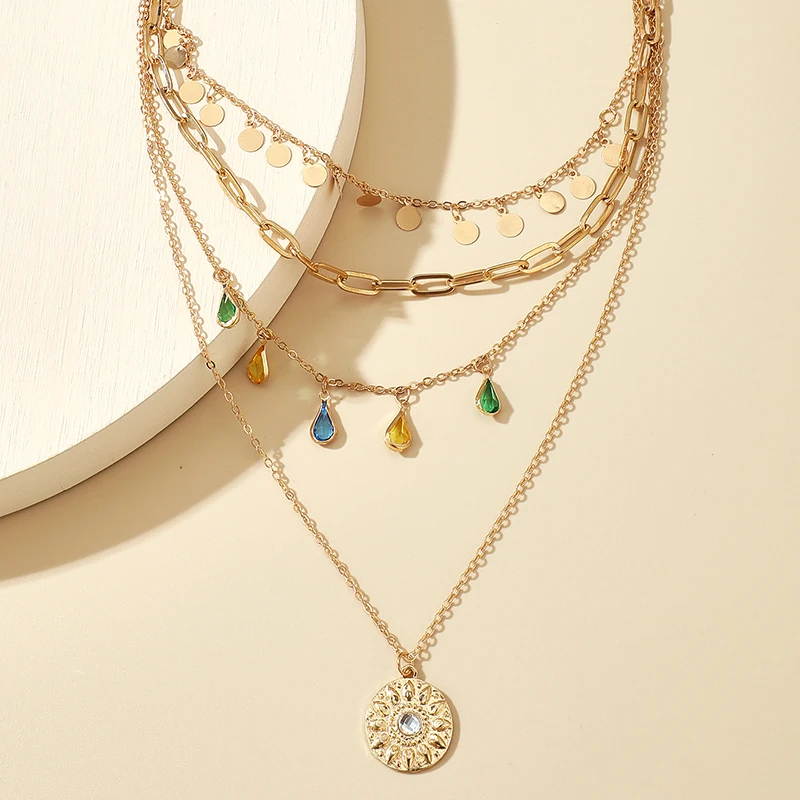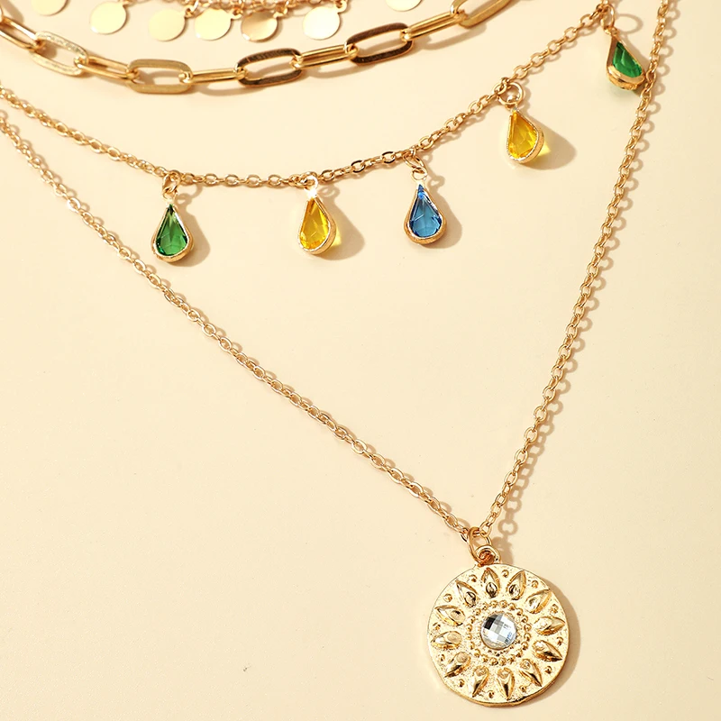 Fleepmart Boho Kalung Liontin Kristal Warna-warni Bentuk Tetesan Air untuk Wanita Kalung Lapis Emas Perhiasan Pesta Wanita |
