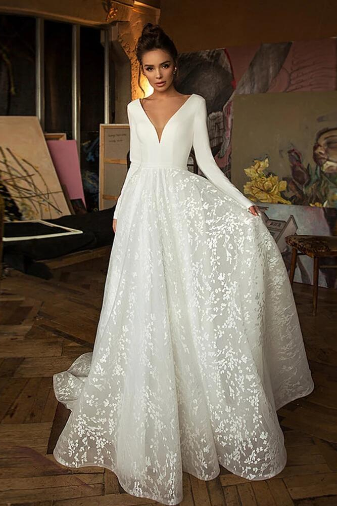 Fleepmart Boho Lace Wedding Dresses 2022 Long Sleeve V-neck Boho Bridal Gowns Satin Backless White Vestido De Noiva Plus Size Custom-made